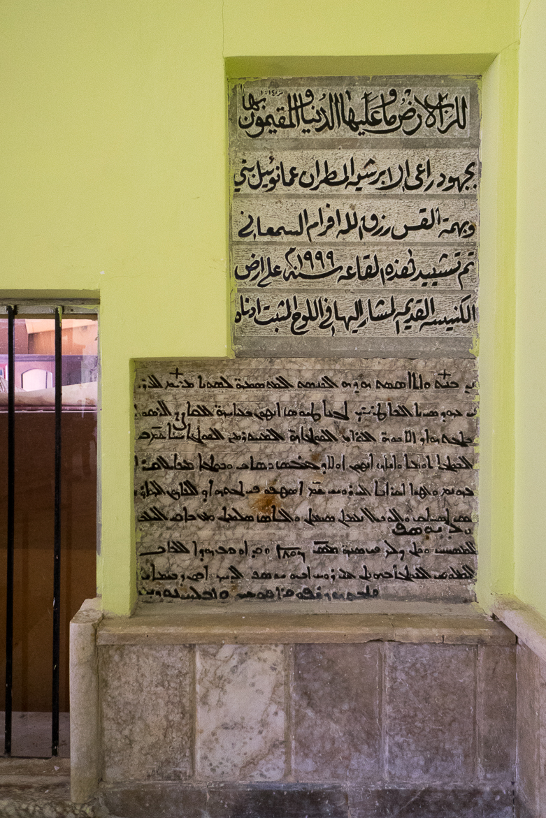 تشهد على كنيسة مارت مريم العذراء الجديدة التي بنيت بين عامي 1924 و 1932 لوحة محفورة على حائط الكنيسة من الداخل. تذكر هذه الكتابة السريانية المؤلفة من 14 سطراً بنائها وتكريسها تحت رعاية البطريرك غابرييل تابوني. يمكن للمرء أن يقرأ ما يلي: ” بنيت هذه الكنيسة المقدسة لوالدة الرب التي حُبل بها بلا دنس في عام 1924 بفضل كرم الأب الأقدس بيوس الحادي عشر ، بابا روما (…) تم تكريسها تحت رعاية القديس اغناطيوس غابرييل تبوني ، في عام 1932 ميلادي. “[2]