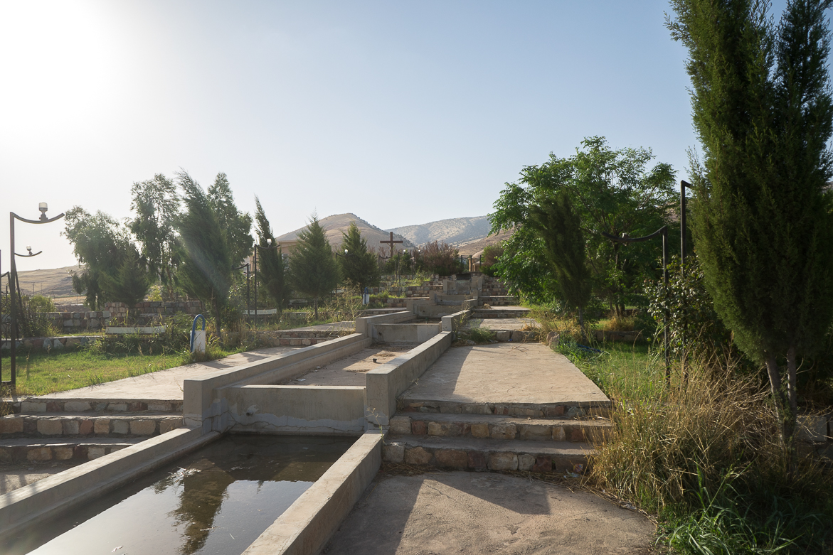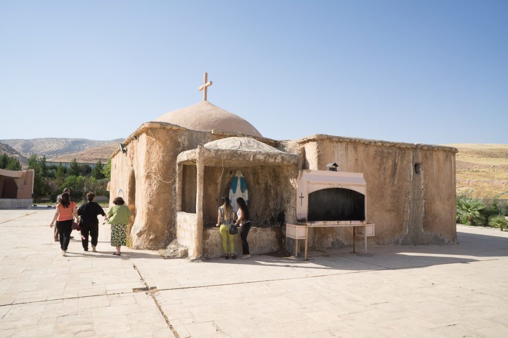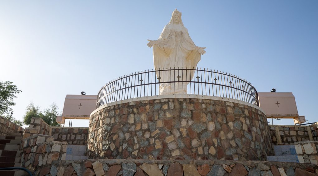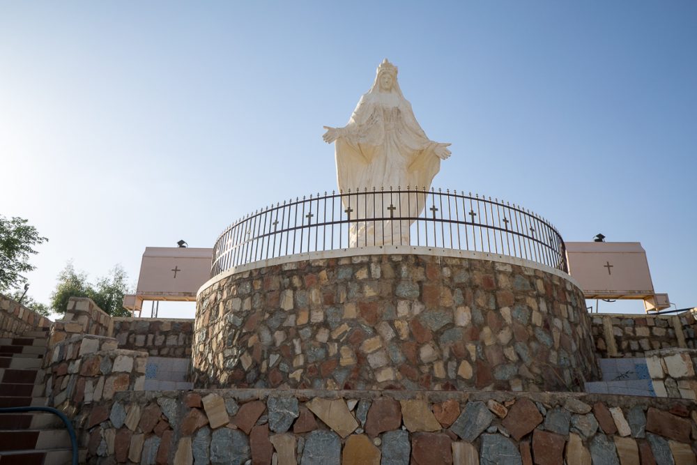 The Mar Bena church in Koy Sanjaq is the point where the religious estate converges with a vast esplanade which contains a pleasure garden, an open-air altar and a huge statue of the Virgin Mary. Behind this esplanade there is also a large cemetery.
