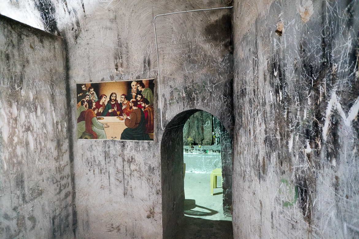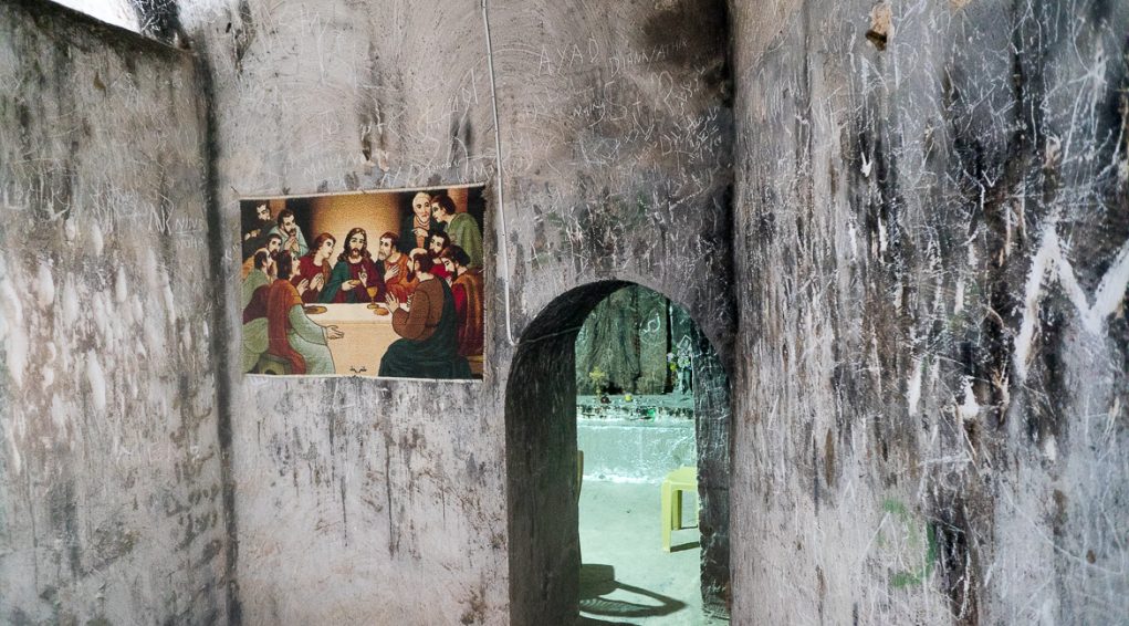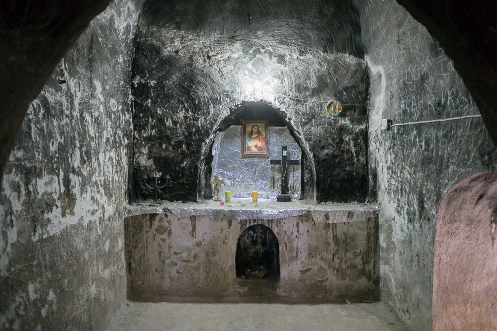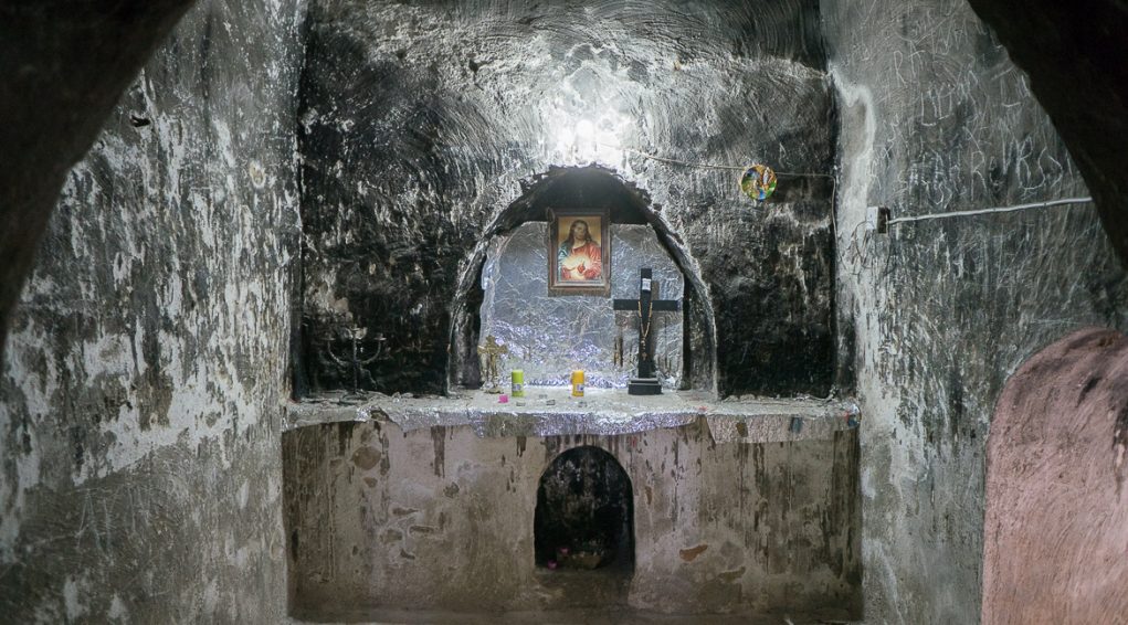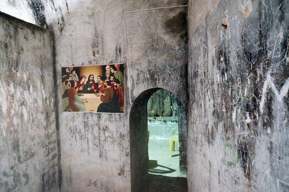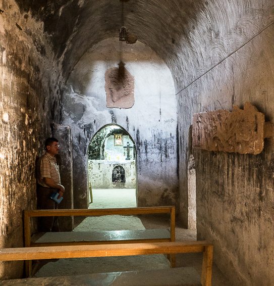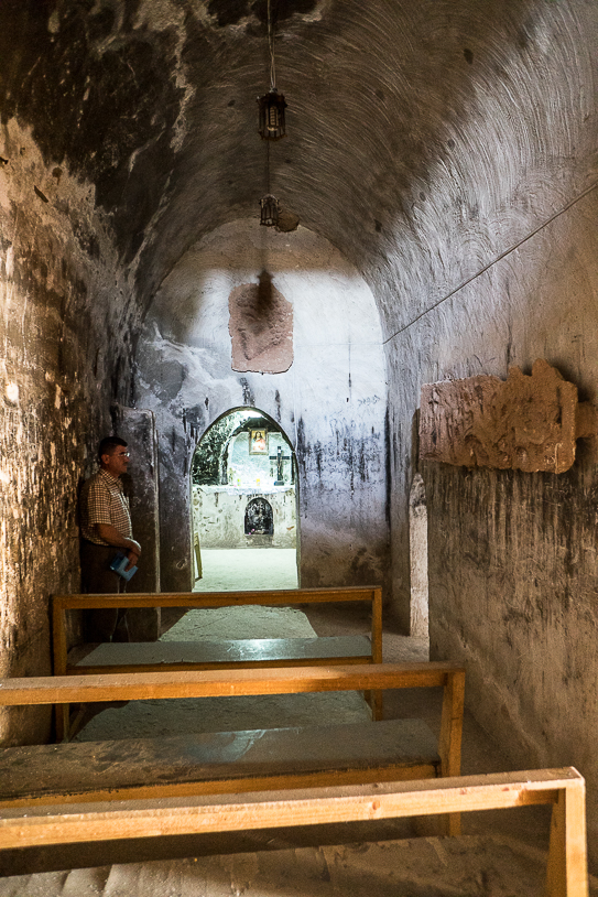 The interior of the Mar Bena church is deliberately sombre, creating an almost troglodyte effect. Outside, a small oratory dedicated to the Virgin Mary adjoins the south wall, to the right of the entrance.