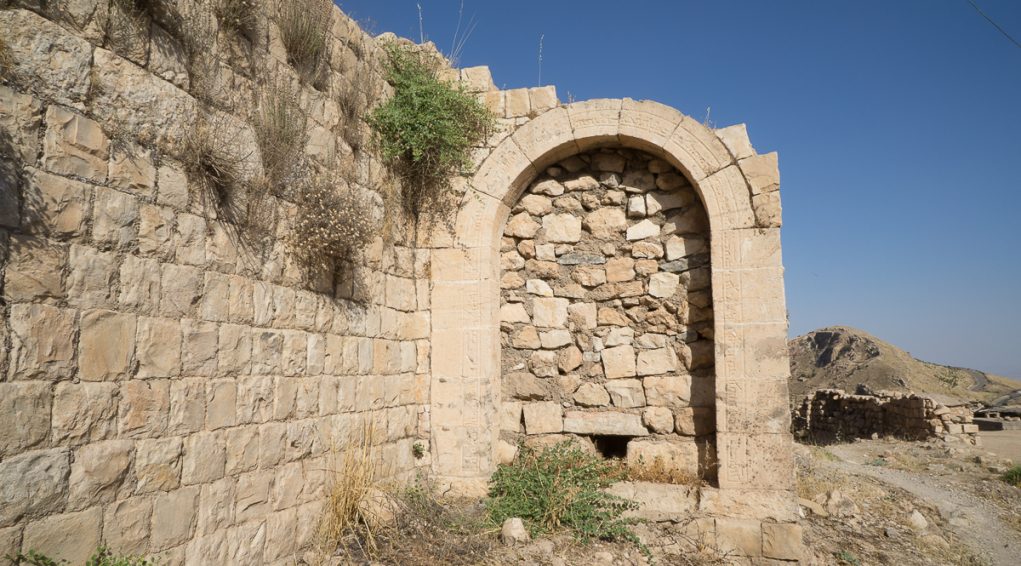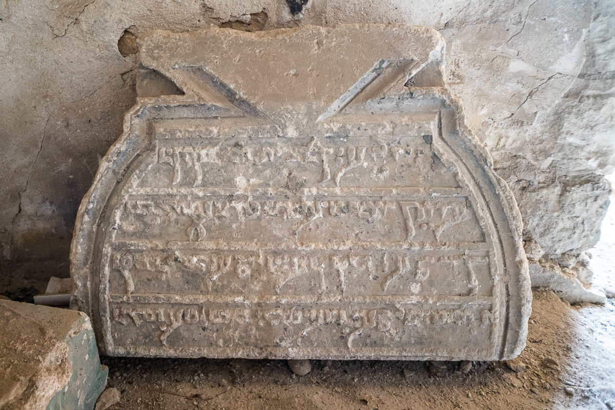 In front of the church is a lower level esplanade where the remains of stone perimeter wall are found, including the entrance door to the south-west, made of quarry stones, with a semi-circular arch, this door also bears Syriac inscriptions.