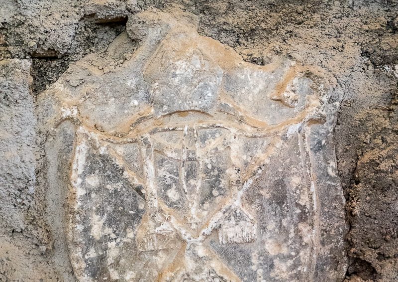 On the south wall is a coat of arms, as well as a marble plaque engraved with Syriac inscriptions. On the north wall is another engraved plaque. One of these broken plaques has an inscription in Estrangelo Syriac which reads “Soultanat al Wardina al moukadasa” meaning “Our Lady of the Holy Rosary”.