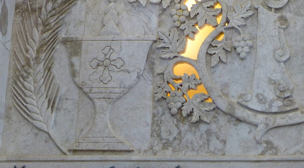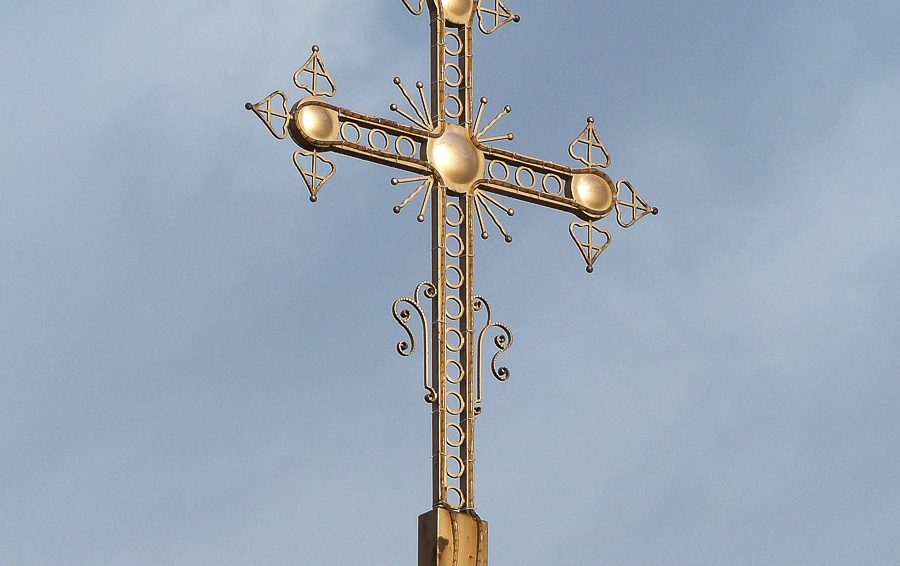 An imposing arch with 3 doors separated the nave where worshipers sit from the Holy of Holies where the altar stands. In the middle of this arch, a beautiful tympanum tops the monumental royal door. It features the beauty of Heaven on earth. The engraved bas-reliefs represent the bread and the cup of wine. They are abundantly decorated with vegetal and floral patterns, surrounding a glorious cross, with the Holy Spirit in form of a dove on top of it. This marble sculpture is adorned with glaring gildings and lattice work, allowing it to glow as if responding, in the liturgy just as in the Eastern spirituality, to Jesus Christ, Light of the World.