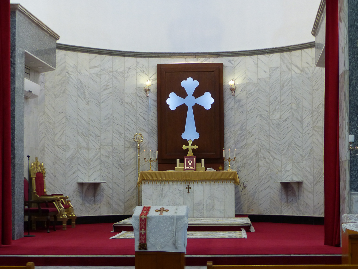 Just like in all churches in the East, the many crosses in the Mar Yokhanna al Ma’amadan church embody resurrection and life, because Christ has conquered death. This is why there are mainly glorious crosses, trefoiled crosses. As in other Eastern churches, (Coptic, Armenian, Ethiopian Churches…), the Assyrian Church of the East does not allow any representation of the Christ Crucified.