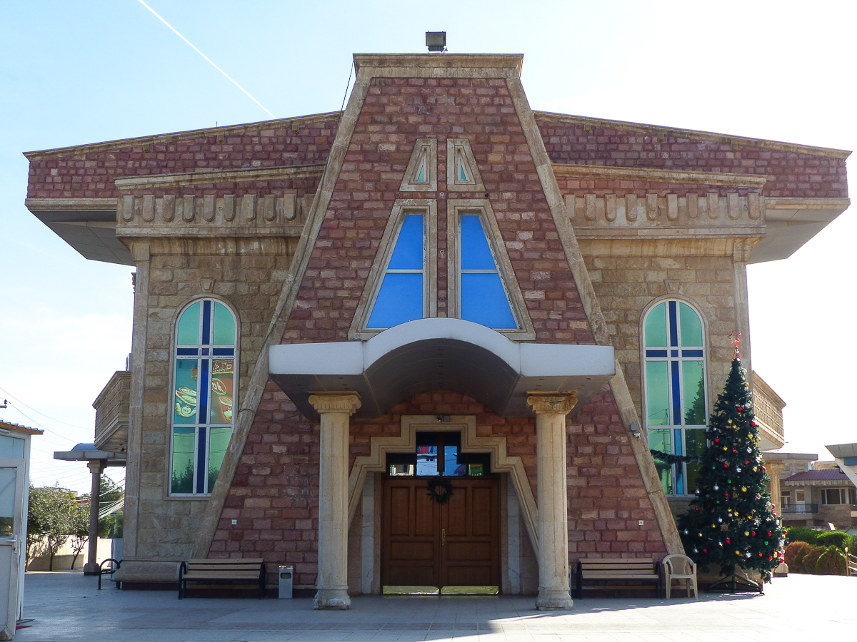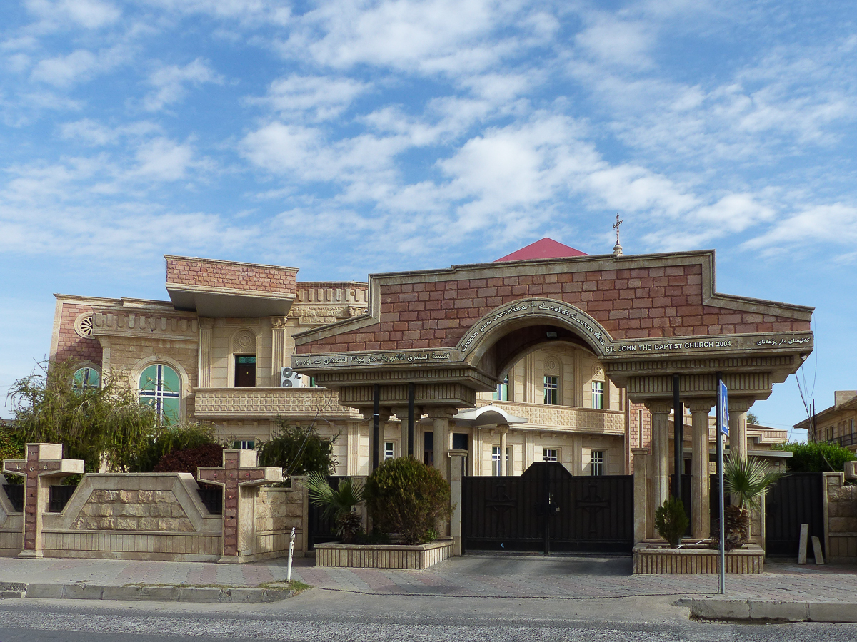 The cathedral of the Assyrian Church of the East, Mar Yohanna al Ma’amadan, Saint John the Baptist church lies at 36°13’55.46″N 43°59’36.61″E and 410 metres high, in the city of Ankawa[1], north of Erbil[2], capital city of the autonomous Kurdistan Region in Iraq.