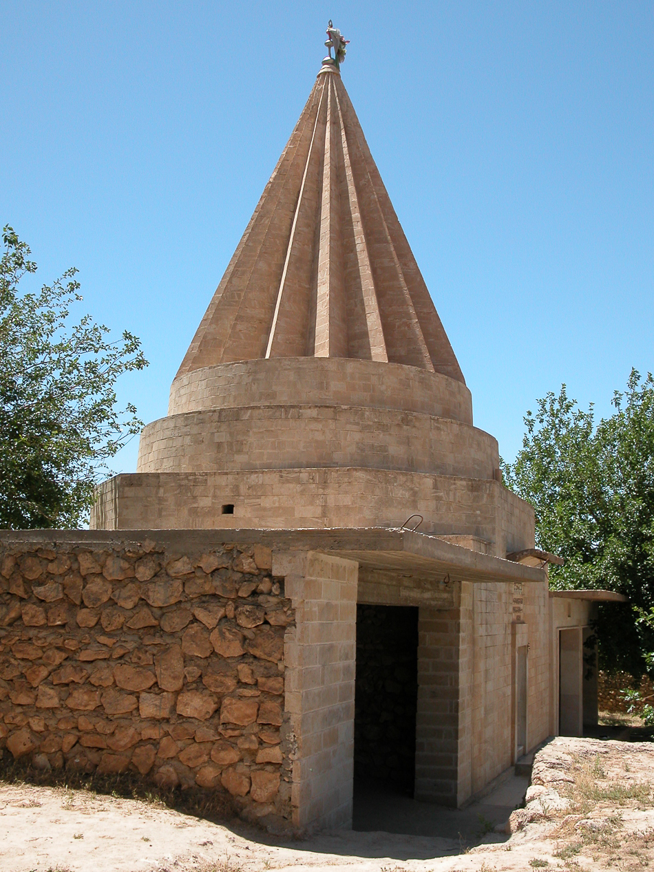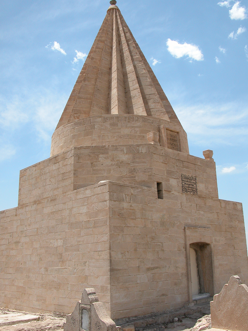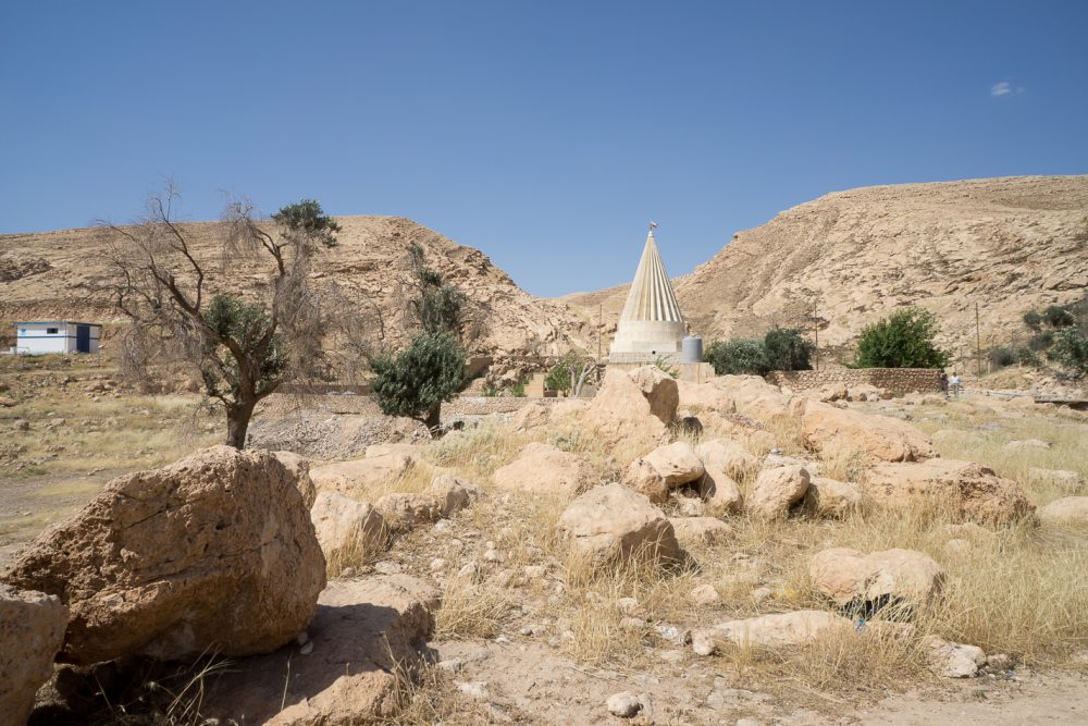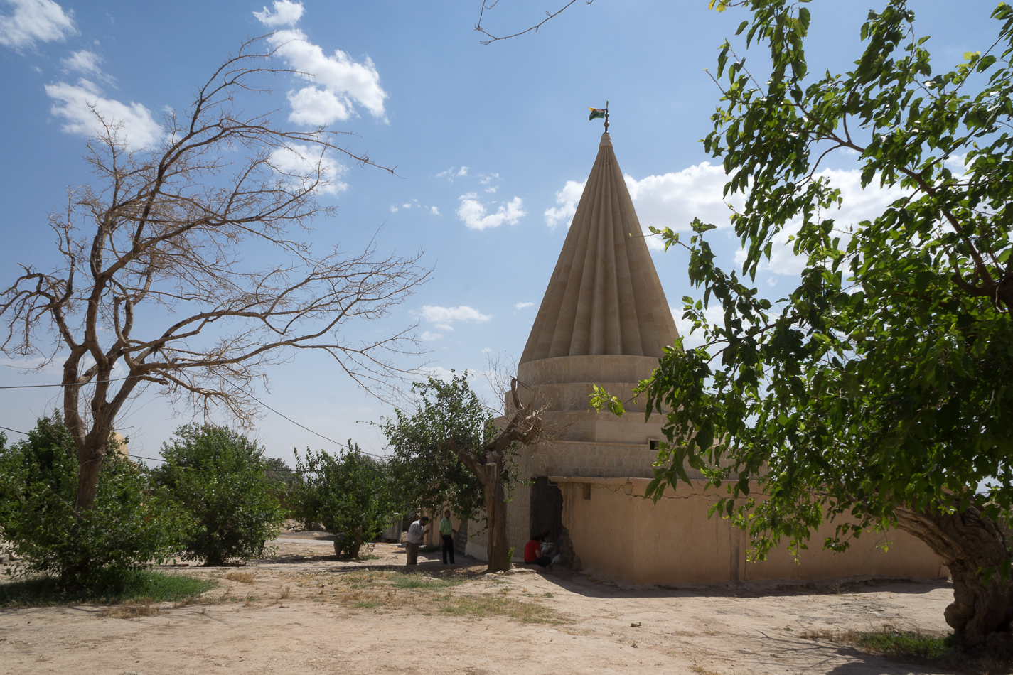 The mausoleum with a conical dome: characteristic Yazidi architecture