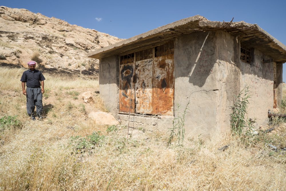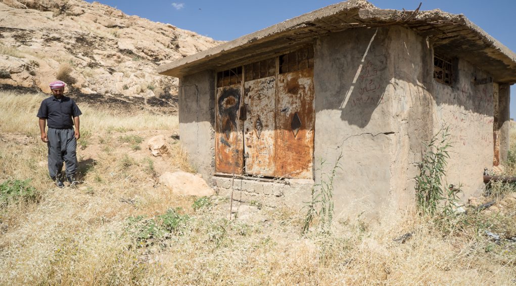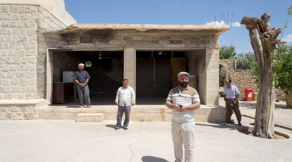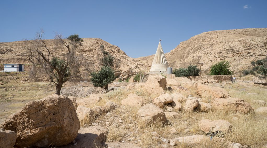 The Yazidi mausoleum Sheikh Bakeur al Qatani in Bahzani is located at 36°28’0.33″N 43°19’43.81″E and 372 metres altitude in the Nineveh province. This is a key sector, situated between the desert plains and the foothills of the Kurdistan mountains.
