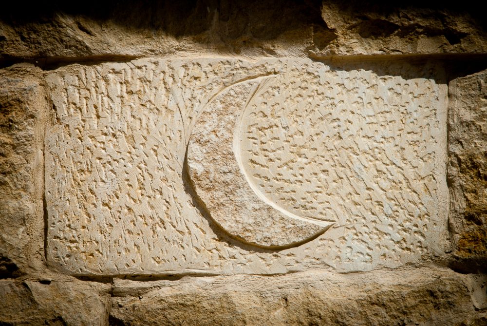 The pinnacle of the dome is systematically fitted with a bronze spire formed of one or more spheres, mounted with a ring, a crescent moon, and a celestial body or hand, around which swathes of coloured fabric are knotted. The spire represents the cosmos, the planets, the sun and the stars created by God. The coloured fabrics represented the colours of the rainbow. [1]