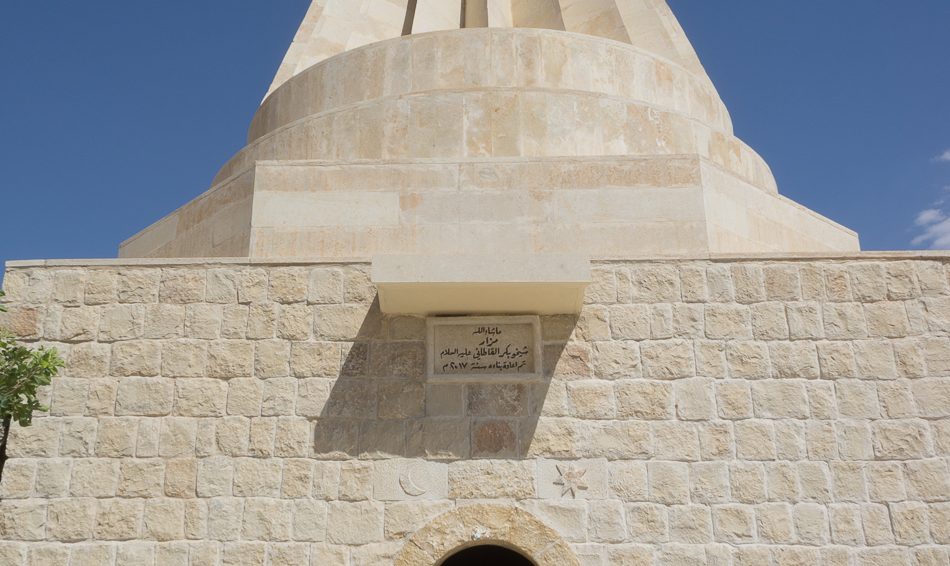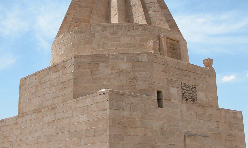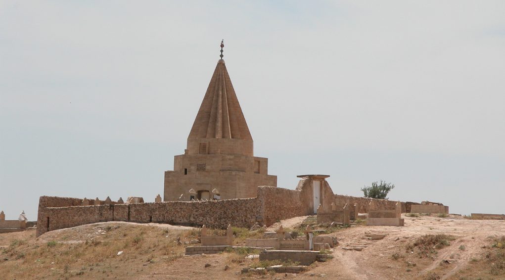 The mausoleum was dynamited during the occupation by ISIS, and in 2017 was rebuilt over a period of 6 – 8 months by volunteers, thanks to donations and with no government support. The new mausoleum has the same cubic structure as the original building. The dome is higher and more elongated. It has 40 segments. The entire building is covered in cut stones, surrounded by a vast esplanade, closed off with a perimeter wall with a gateway mounted with a reproduction of a peacock’s tail.