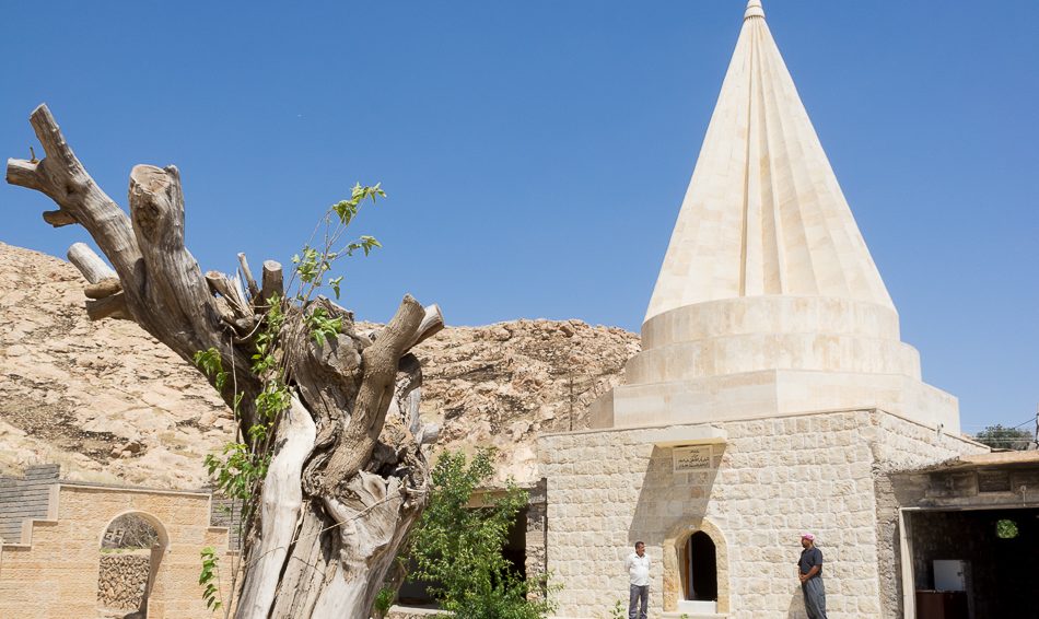 Remarkably, despite the extent of the damage, all 22 of the mausoleums destroyed by ISIS have been rebuilt, although many of the installations for which the region was renowned are still missing. The local Yazidi leaders told us that they received no financial support from the Iraqi government. However, it would seem that the Yazidi diaspora in Germany has been of vital assistance.[6]