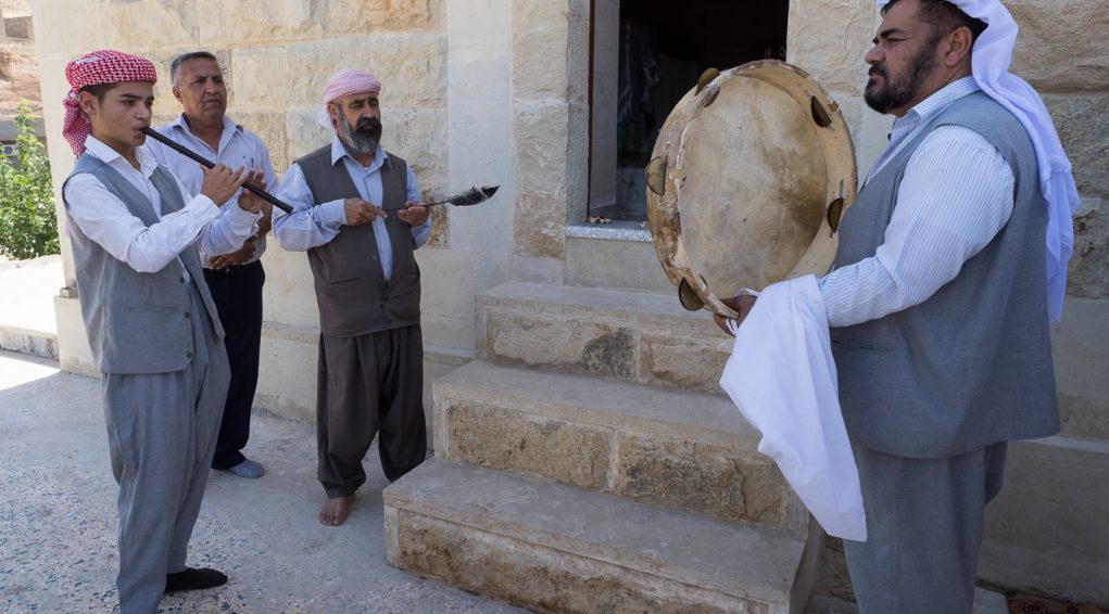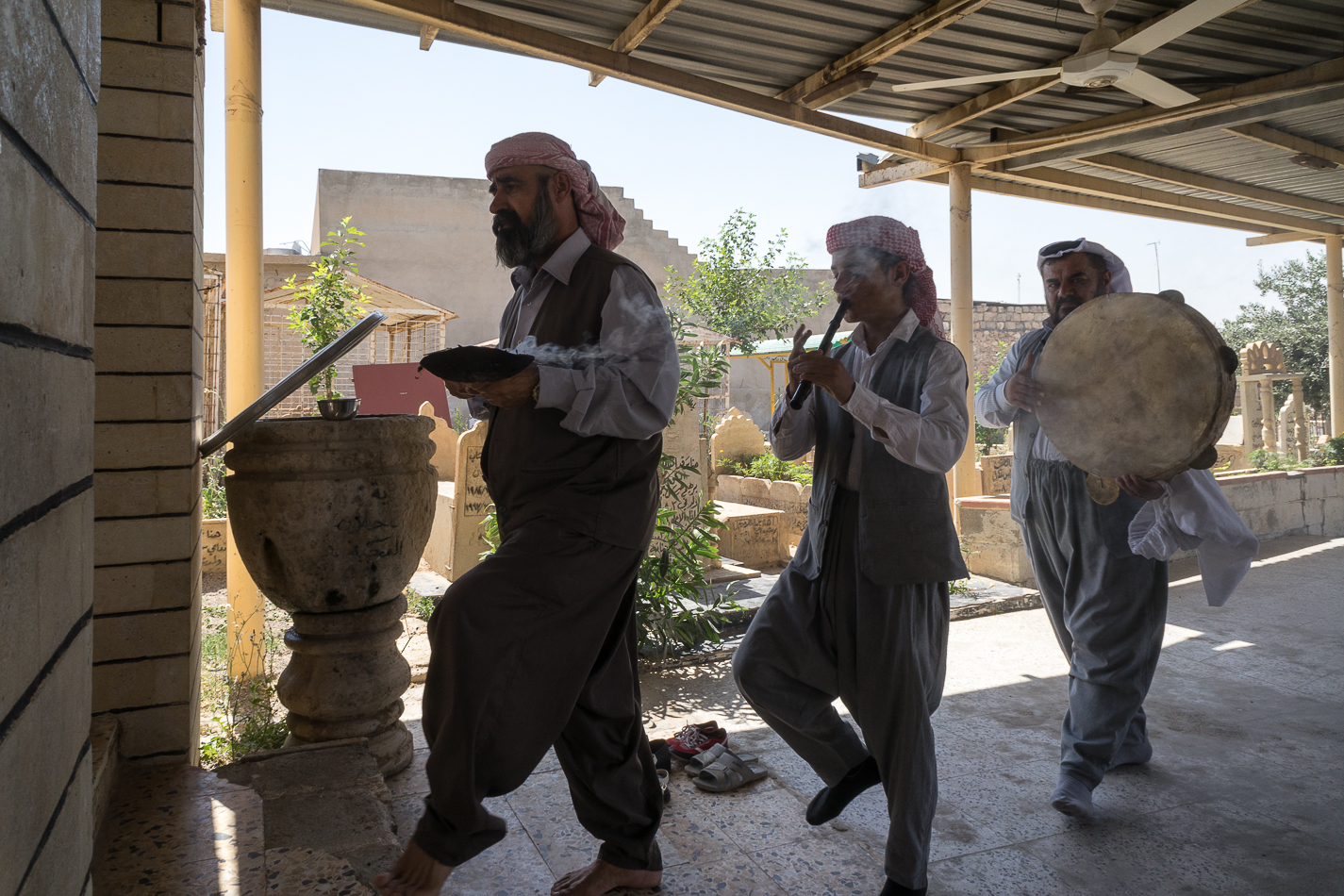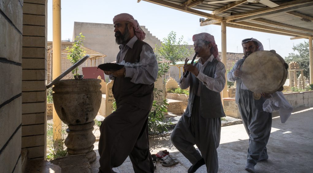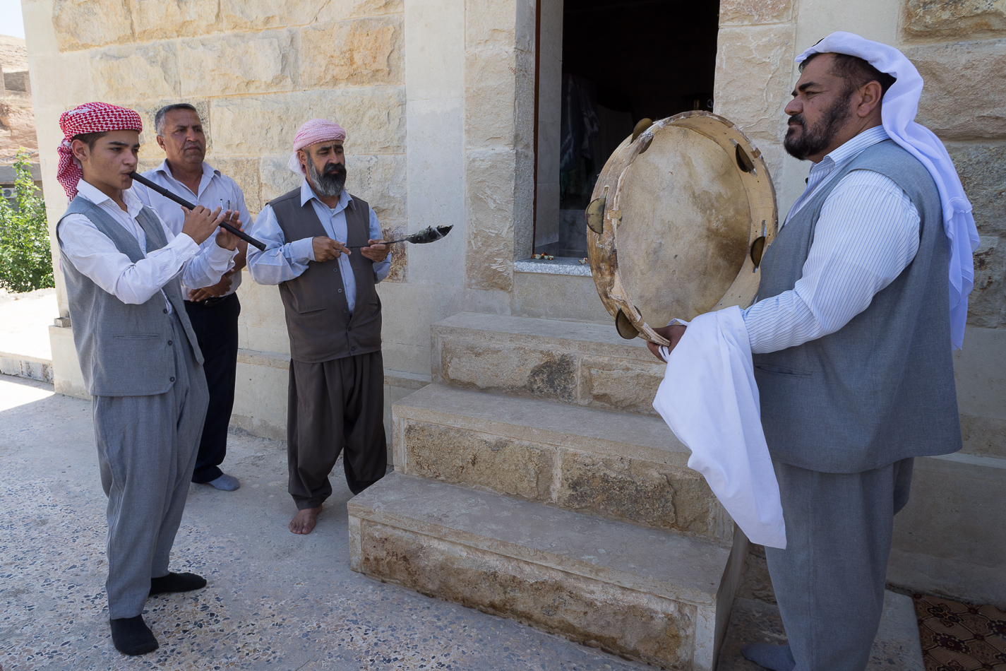 The Yazidi generally pray individually, but also gather together as a community at their temples and sanctuaries to listen to qawals, who are both musicians and the gatekeepers and guardians of the Yazidi religion, whose knowledge and practices are passed on from father to son.