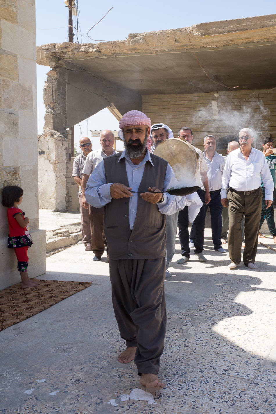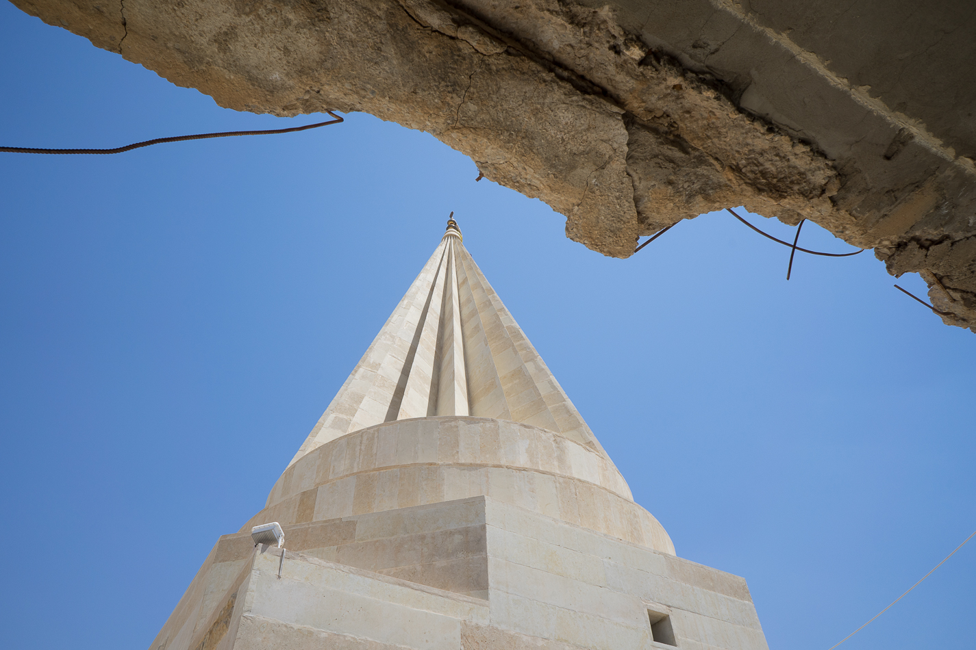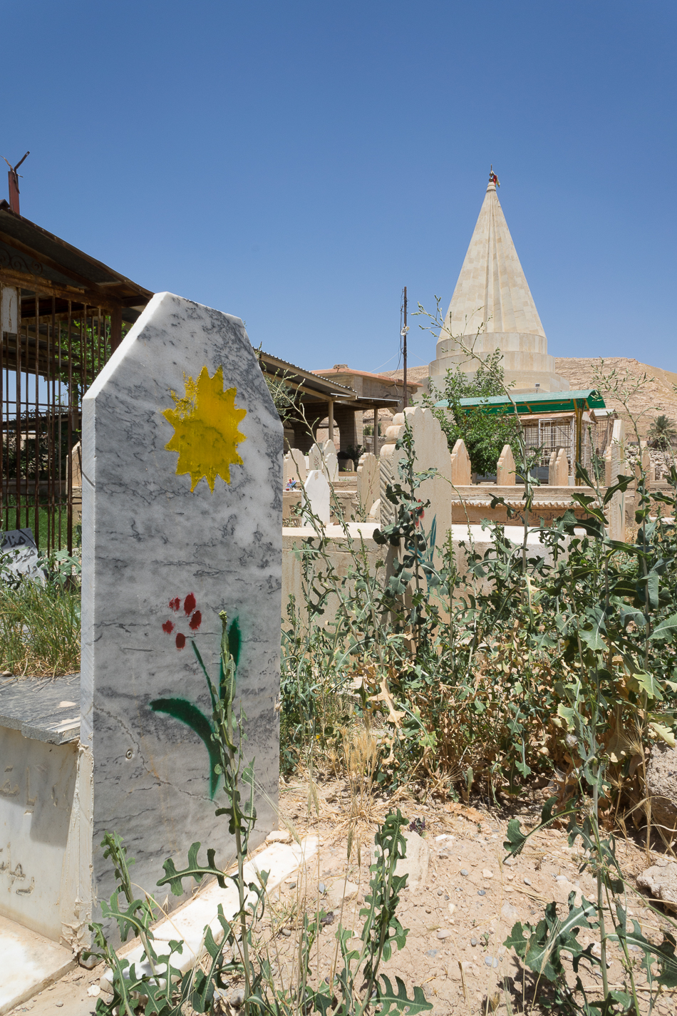 Bashiqa, together the neighbouring town of Bahzani, had the third largest population of Yazidi in Iraq, prior to the Sinjar massacre. This area is considered to be the intellectual heart of Yazidism. ISIS occupied the area from 7th August 2014 to 7th November 2016. The jihadists destroyed the 22 Yazidi mausoleums in Bashiqa and Bahzani. The Yazidi libraries found here were also reduced to dust. They even burned down the famous sacred olive grove in Bahzani. Despite the extent of the destruction, quite remarkably, all 22 of the mausoleums destroyed have been rebuilt with support from the Yazidi diaspora, but without any form of government aid.