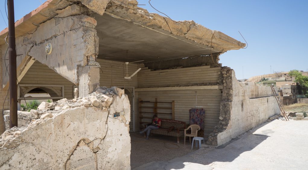 Situated at the heart of the Nineveh plain, between Mosul and Sheikhan, on the edges of Mount Maqlub,[4], the urban area of Bashiqa and Bahzani had the third largest Yazidi population in Iraq prior to the Sinjar massacre. Whilst Bahzani constitutes the ancient sector with numerous ancient buildings, Bashiqa is modern in appearance and is mainly composed of new buildings. The spatial organisation, history and heritage of the area was wiped out by ISIS. The jihadists who occupied the area from August 2014 and November 2016 not only destroyed the 22 Yazidi mausoleums in Bashiqa and Bahzani, but they also reduced the Yazidi libraries in the area to dust, including the library of master qawal [5] Bahzad Suleyman Safode Bahzani, member of the council of five dignitaries surrounding Baba Sheikh. The Islamic assailants even burned down the famous sacred olive grove in Bahzani. This destruction was all the more devastating as Bashiqa and Bahzani were considered to be the intellectual centre of Yazidism in Iraq.