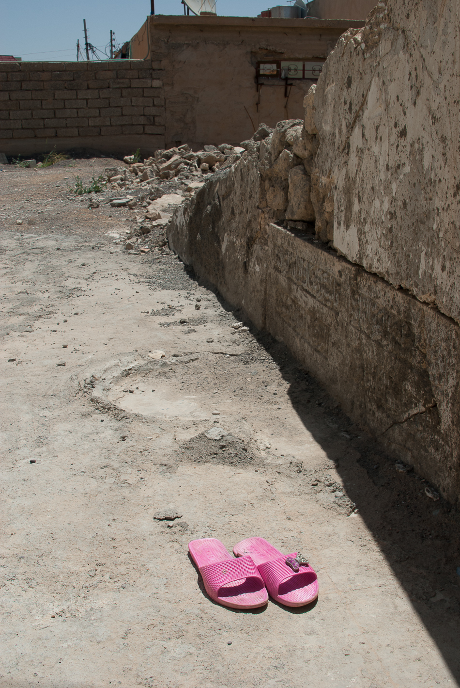 The sacred space in any Yazidi mausoleum includes the slab in front and around it. That is why any visitor or pilgrim must remove their shoes.