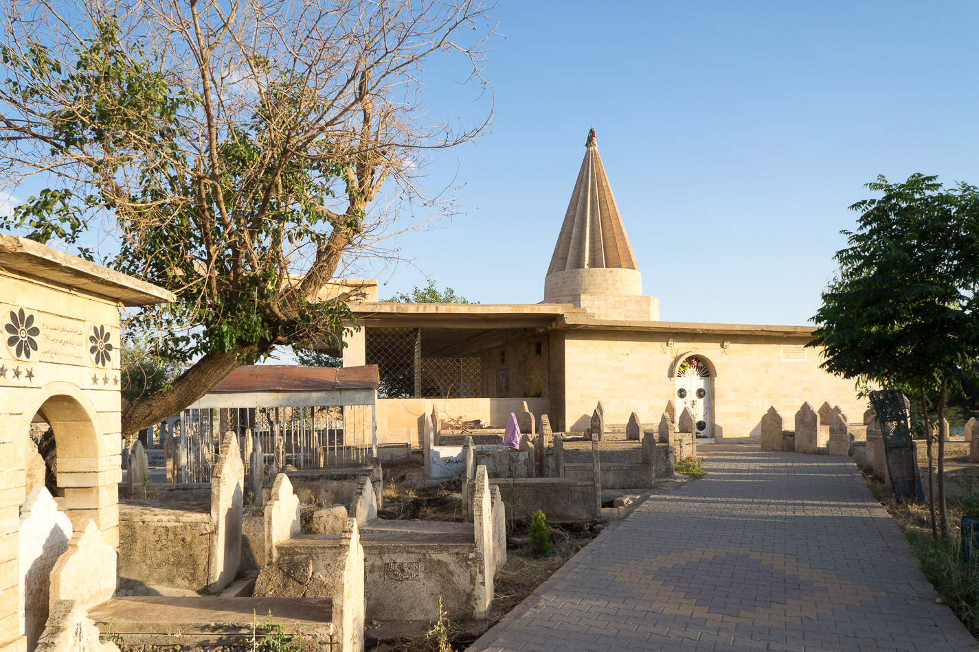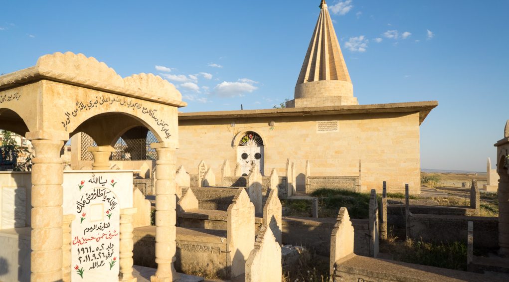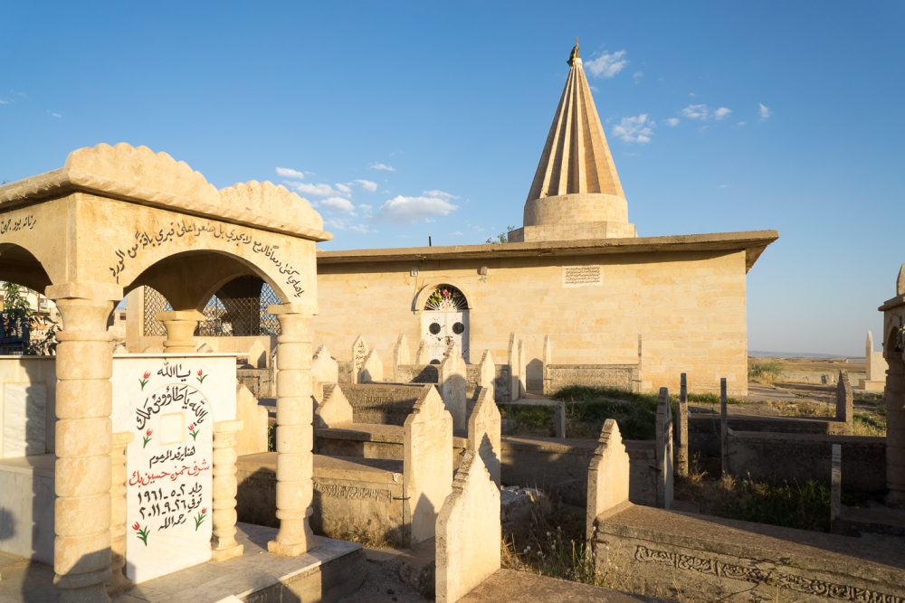 The mausoleum with a conical dome: characteristic Yazidi architecture