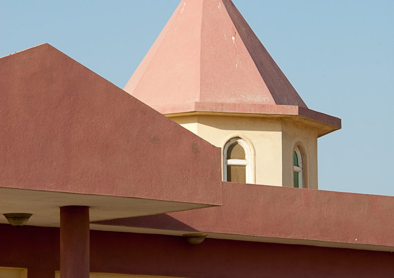 The church is formed of a flat, terrace roof hall, lit with abundant natural light thanks to the numerous windows in the north and south facades and the cupola.