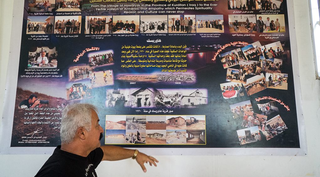 Following the fall of Saddam Hussein in 2003, the Armenian families from Havresk chose to return home in 2006, one year after the region officially came under the autonomous rule of Iraqi Kurdistan. The Kurdish government funded the initial construction of twenty houses in Havresk, supported by Sarkis Aghajan, a Christian benefactor and former Minister of the Economy and Finance. In the first year the living conditions were very difficult with no running water or electricity, but the reconstruction of the village continued with a new school, a community centre and by 2018, 115 houses which became homes not only for Armenian families but also, temporarily, for 85 families displaced from Qaraqosh and Bartella. Thanks to the efforts of its mayor, Mourard Vartanian, the village of Havresk has become a dynamic and attractive village. The inhabitants even continue to use the Armenian language and alphabet, thanks to an educational model put into place in 1958 and updated in 2006.