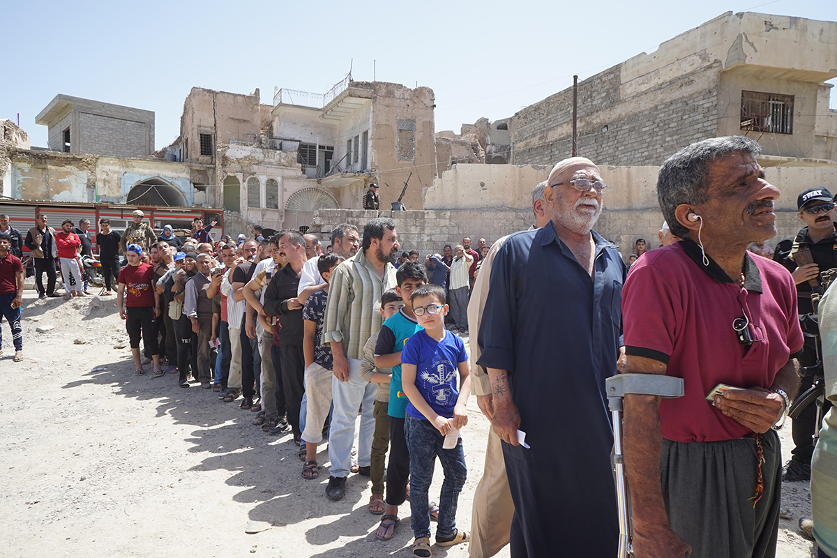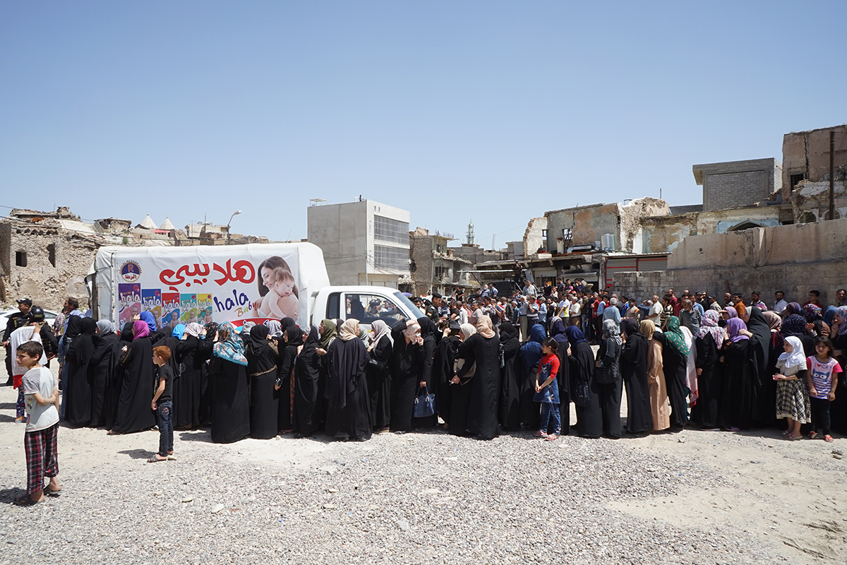 In May 2019, Mesopotamia’s representative photographed a food distribution to the poor population of Mosul, where once stood the church of Mar Guorguis.