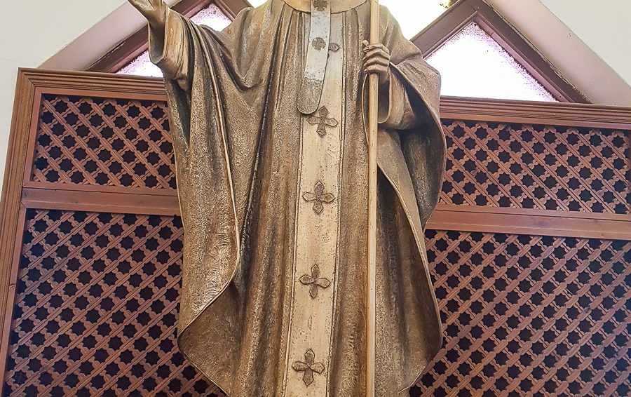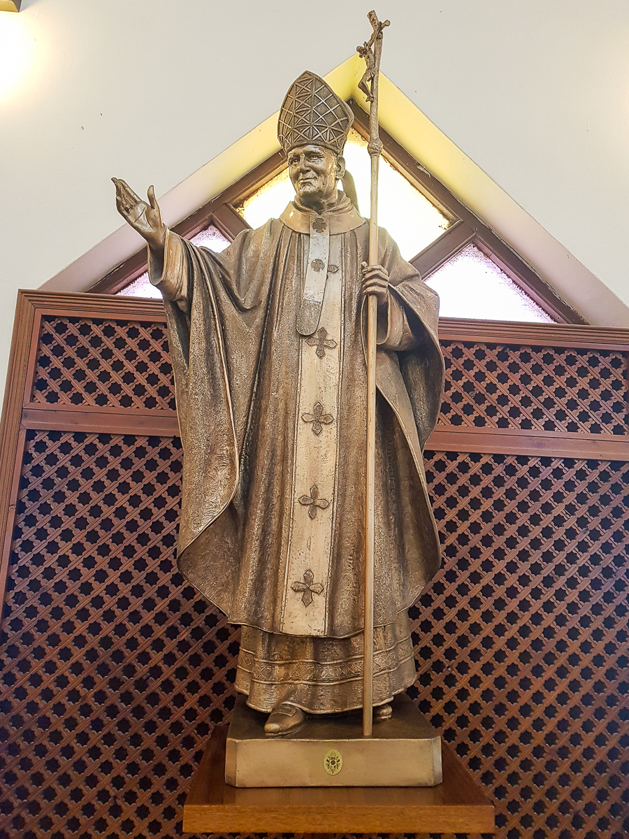 An oratory containing a statue of Saint Rita is situated in the north side-aisle. Opposite, in the south side-aisle, is a statue of Saint Jean-Paul II.