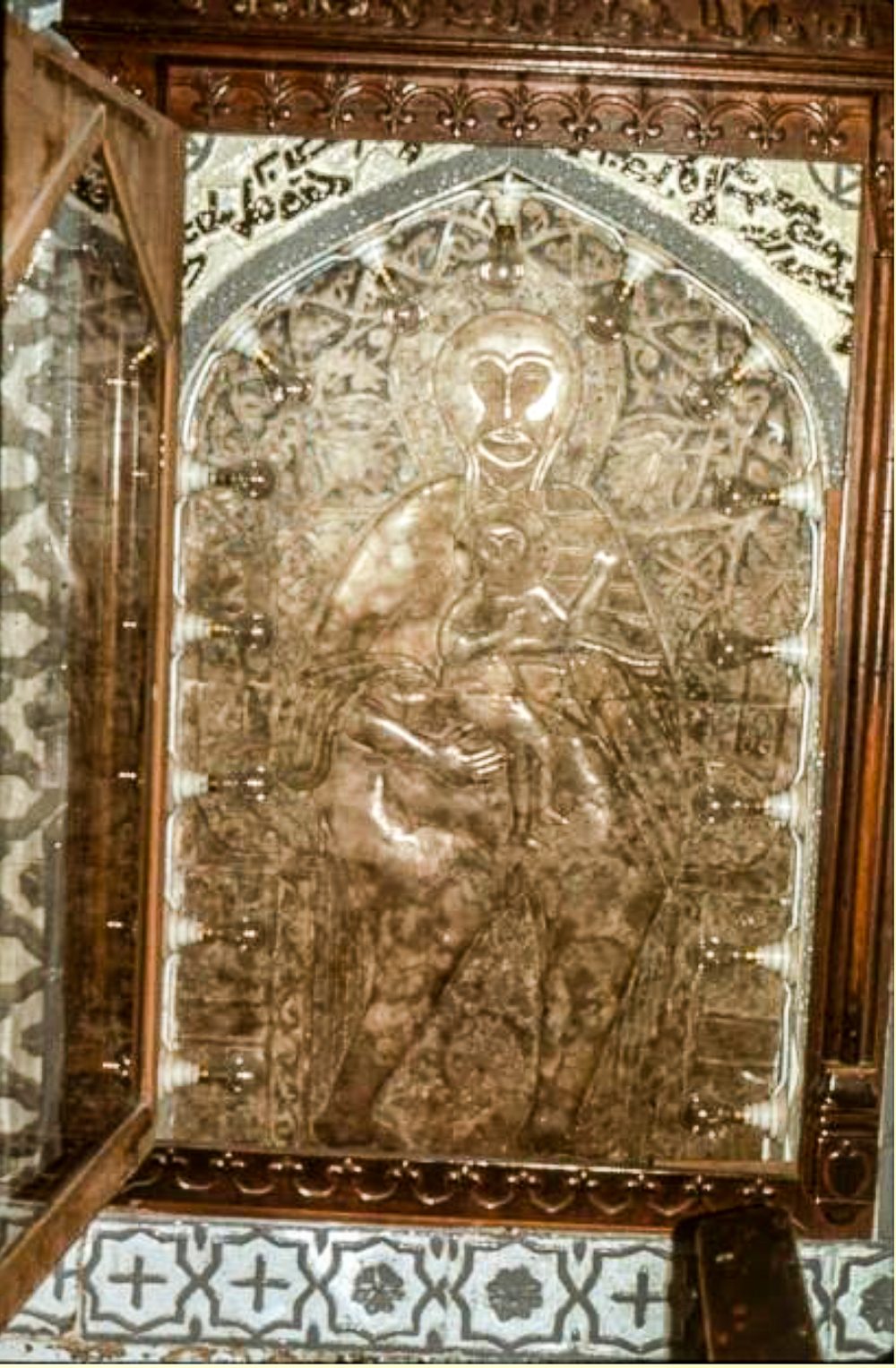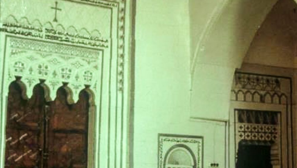 Above the royal door, these two lines are engraved in the marble in Garshuni Arabic: [3] God, who sanctified the Altar of the Ancients made by Moses, the first of the prophets, sanctify, in your mercy, the altar of the faithful, which will become forgiveness for the sins of the sinners. In 1744 the church of the Blessed Virgin Mary, was restored by the attentions of Sire cIsā, as well as those of the priests, deacons and people.May the Lord reward them in the Kingdom of Heaven.