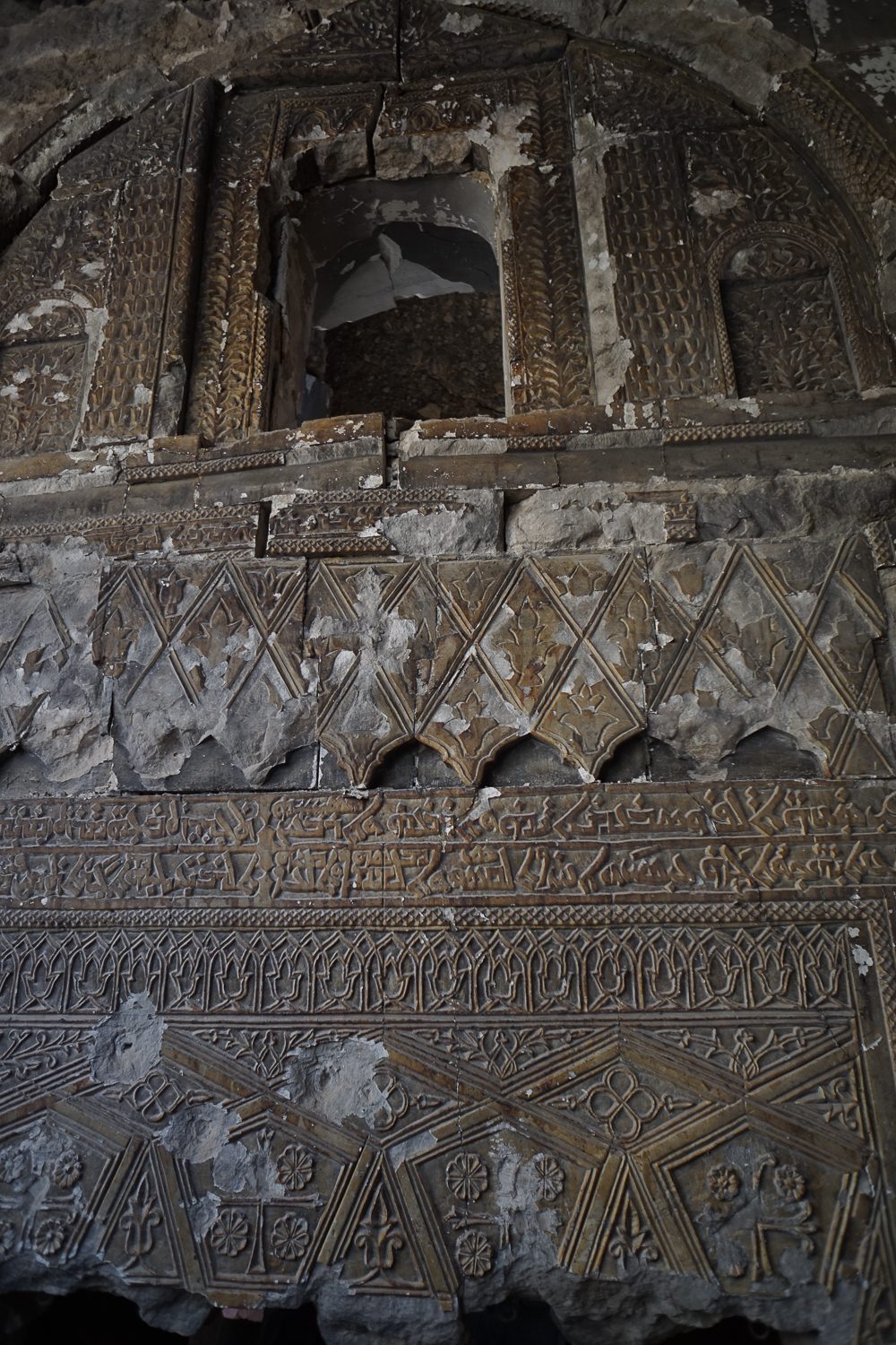 In the 7th and 13th centuries, at the height of the Seljuq period, the Atabeg dynasties imposed their rule throughout Iraqi Mesopotamia and made Mosul a centre of power. At this time, Syriac-Orthodox Christians persecuted in Tikrit fled to the Nineveh plain and Mosul, where they established their community and founded the Mar Ahûdêmmêh (Hûdéni) church. “At the end of the 20th century due to below-ground flooding throughout the neighbourhood, the Mar Hûdéni church located well below ground level was flooded and had to be abandoned”. A new church was built right on top of the old one. Thankfully, the royal door in the Atabeg style, described by Father Fiey as a “jewel of 13th century Christian sculpture”, was transported to the new church and given pride of place. [5]