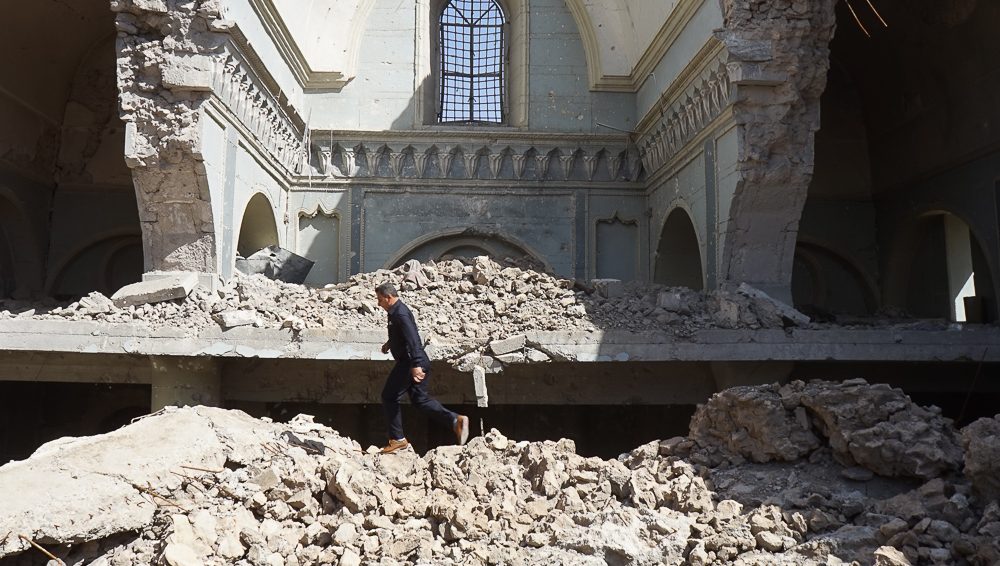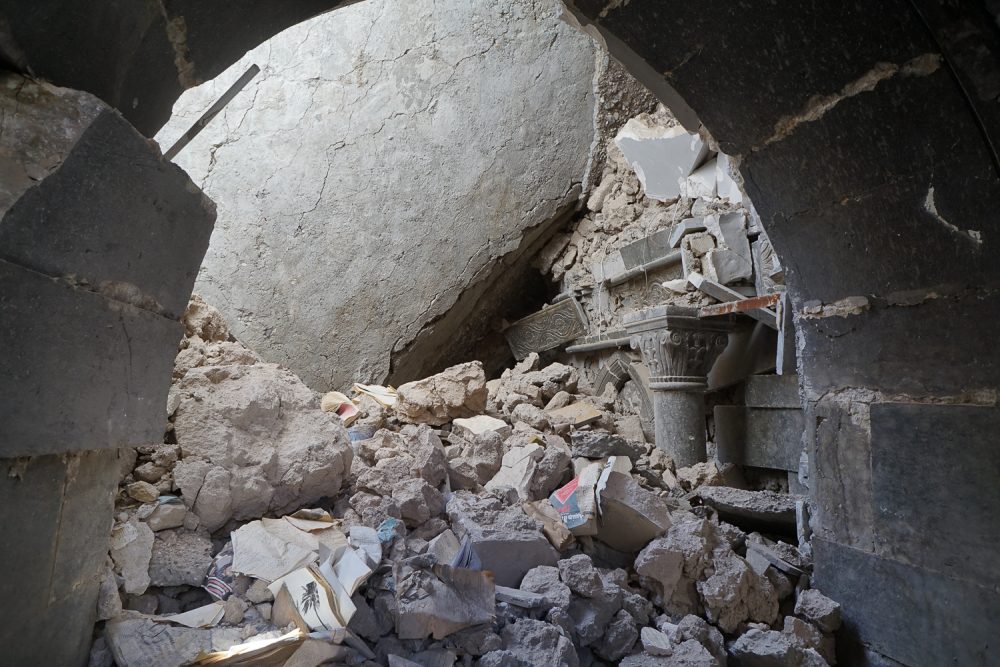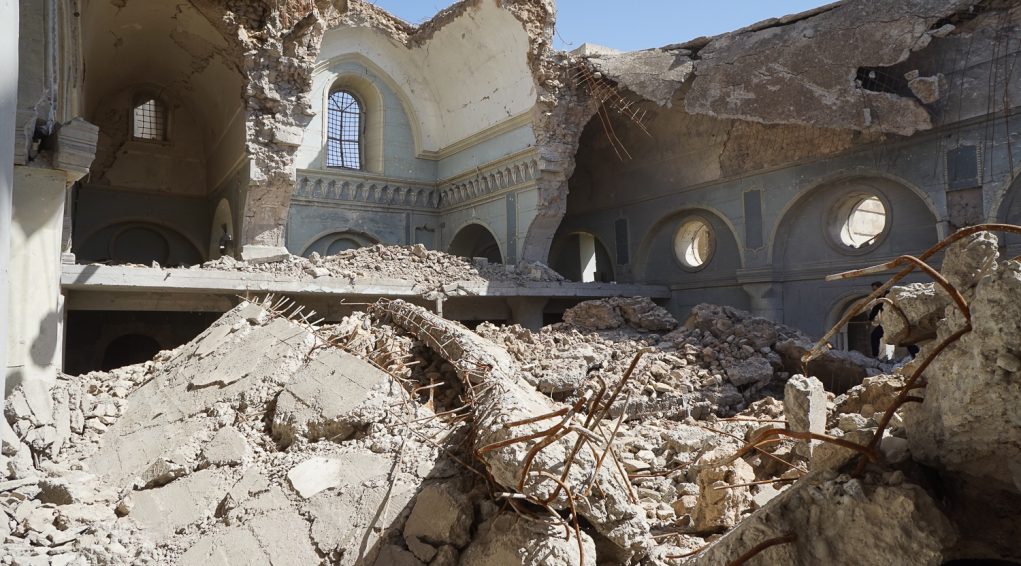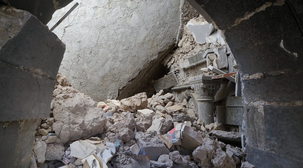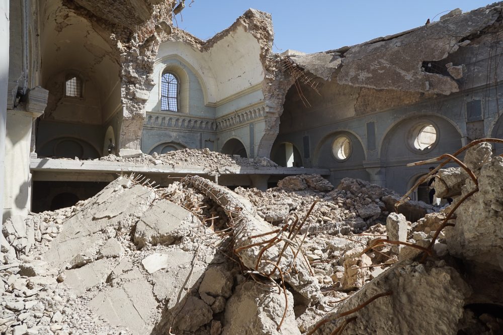 Mosul’s Syriac-Catholic Al Tahira Cathedral was no more. Only the west façade and part of the north and south side walls remained. The rest was a huge mountain of rubble.