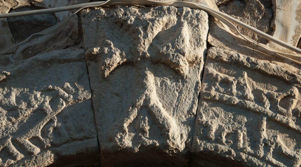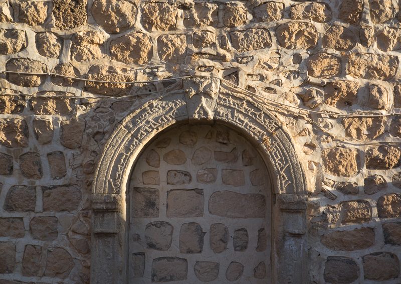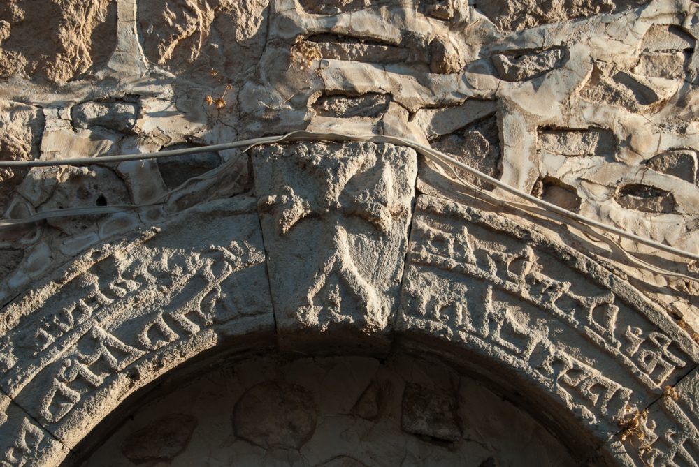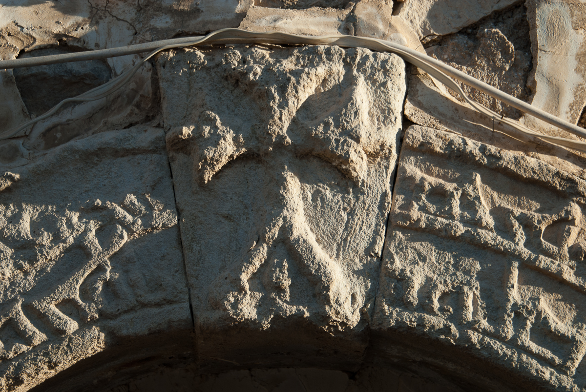 The walled-up door with semi-circular arches on the north facade of the building is one of the last notable pieces of architecture from the time of its reconstruction. The keystone of the arch is sculpted with an Assyrian stone cross. The engraved inscriptions in Syriac are still partially visible on the abutments and voussoirs. Above this door, a highly damaged marble plaque, is also engraved with Syriac inscriptions.