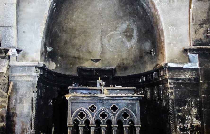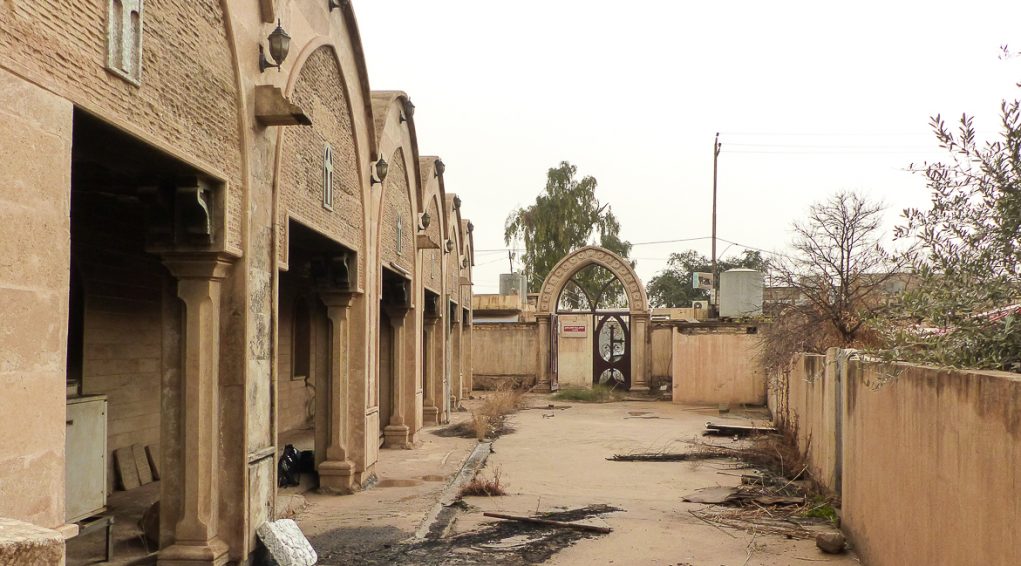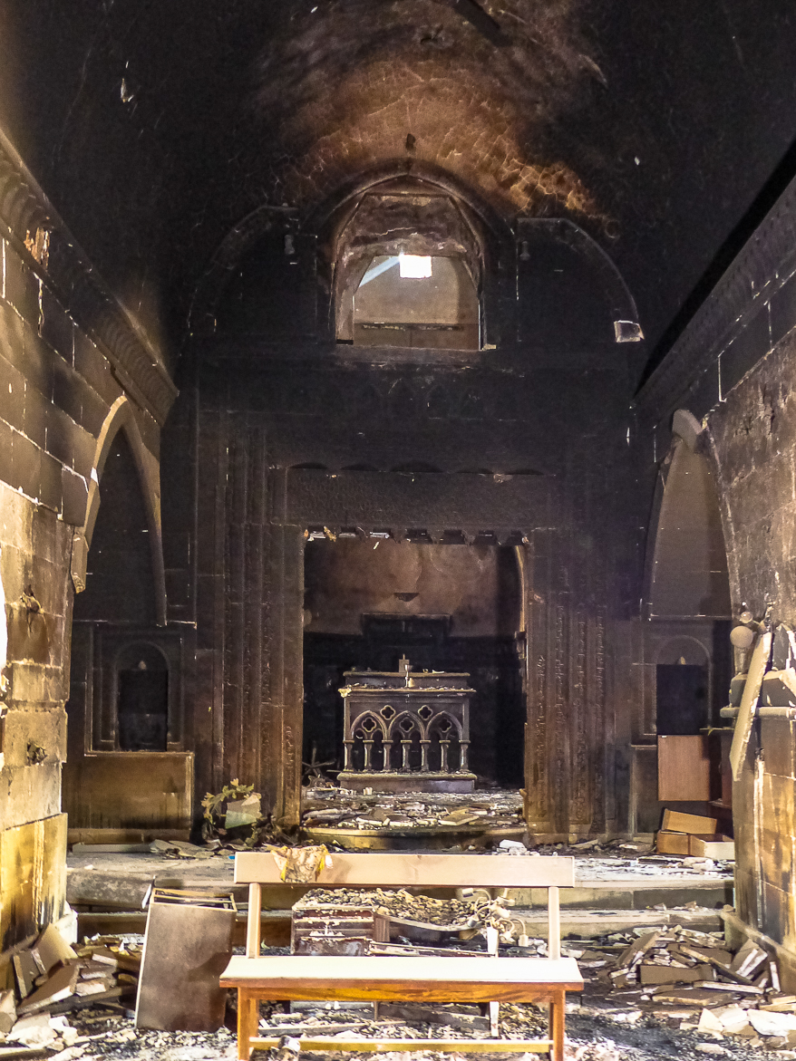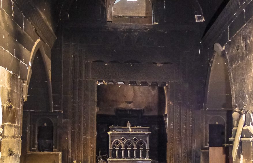 Ravagée par daesh, l’église des Saints Serge et Bacchus « semble comme figée depuis la libération[1] » d’autant plus que « moins de 150 familles syriaques-orthodoxes seraient revenues[2] » et qu’il n’y a pas (encore) de prêtre syriaque-orthodoxe pour cette communauté confessionnelle.
