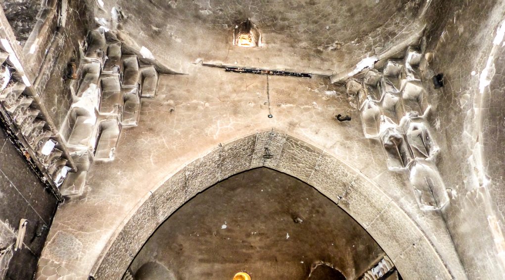 Des céramiques et faïences décoratives méritent également d’être signalées sur les parois de l’église. De couleur jaune, ornées de croix datées des XVe – XVIe siècles, elles ont été inventoriées et décrites par l’archéologue Narmen Ali Amen comme des « exemples rares que l’on trouve seulement dans deux églises de Qaraqōš [3]». On pouvait encore les voir avant les dévastations de daesh.
