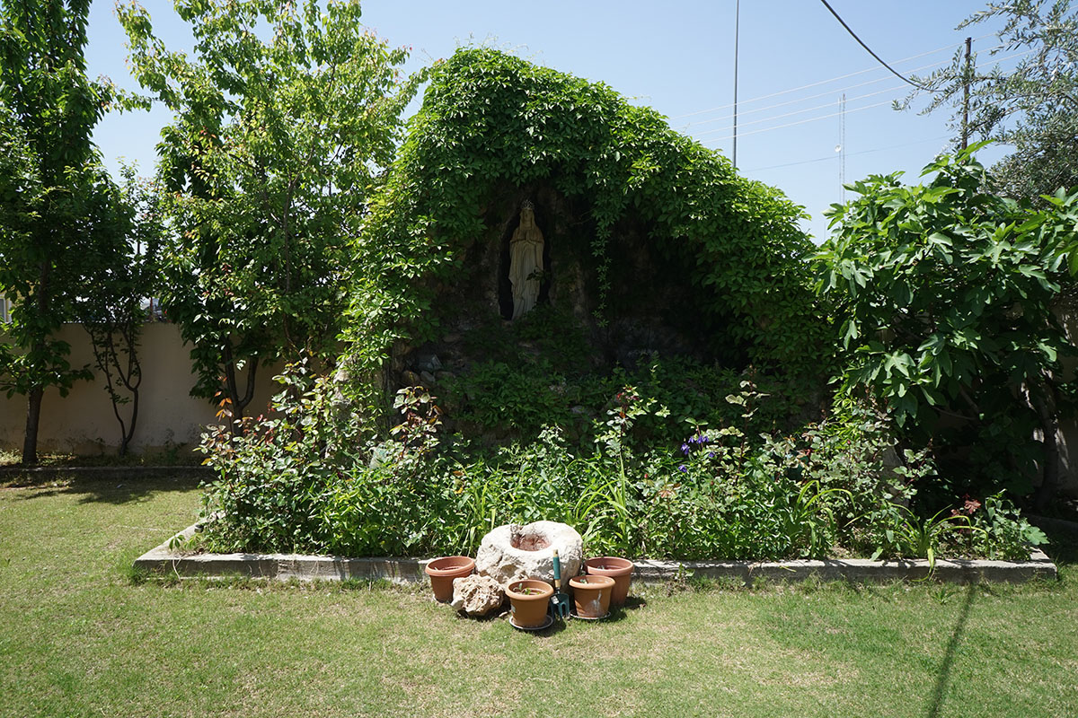 L’église Mar Yohanna Al-Ma’amadan de Dawoodia se trouve dans un espace clos, à l’intérieur duquel se trouve un petit jardin dans lequel a été recréé une réplique de la grotte de Lourdes pour honorer la Vierge Marie et satisfaire à la dévotion mariale très répandue en Irak.