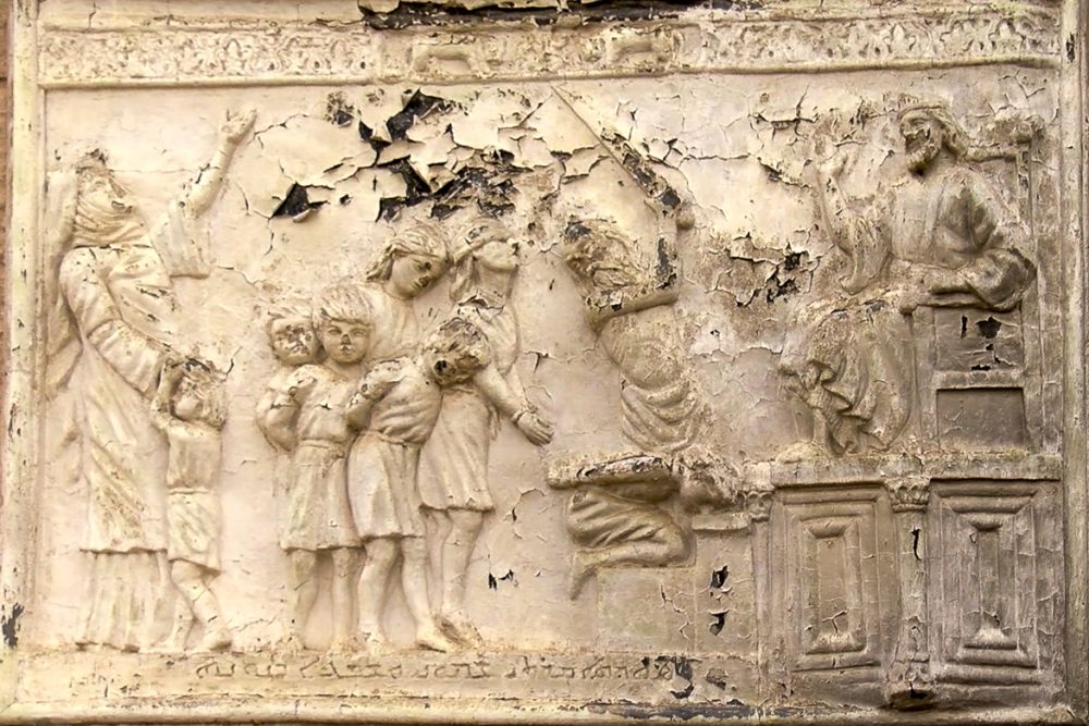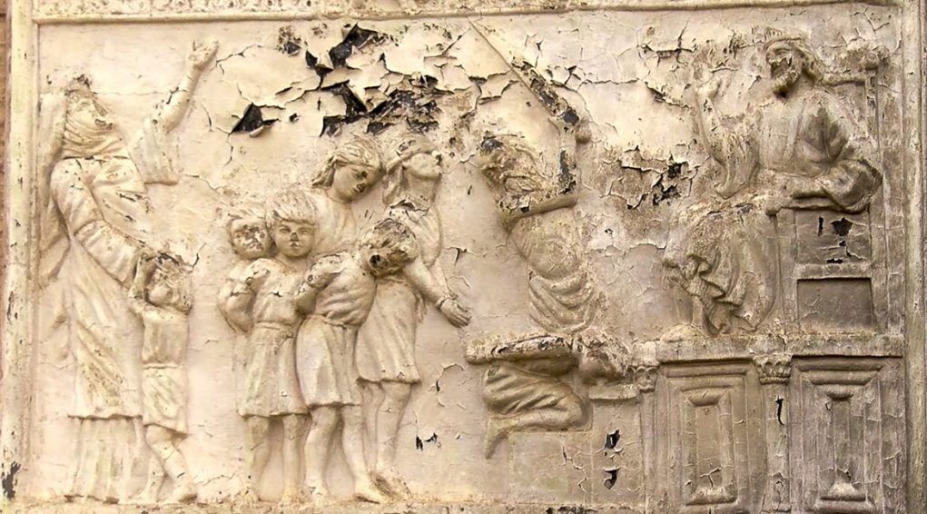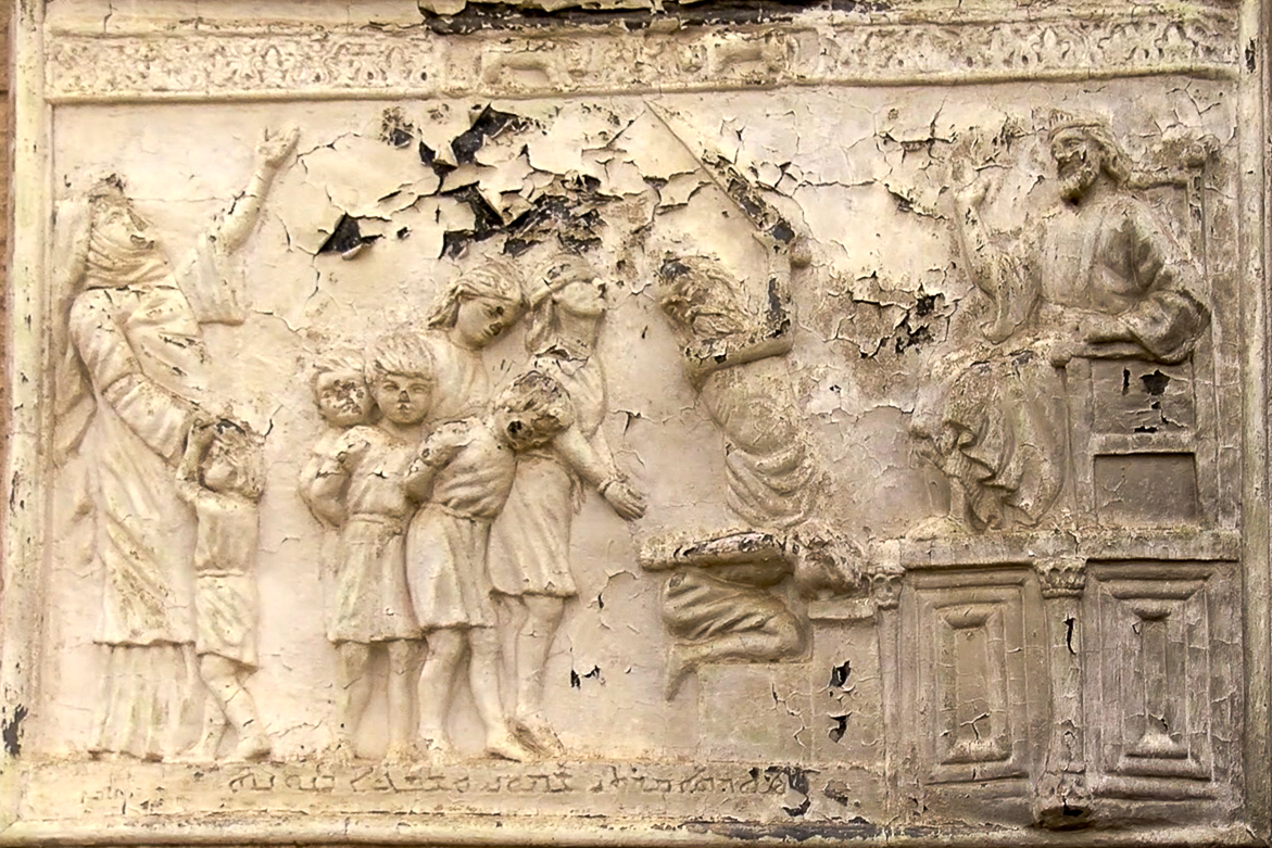 Les sept frères Maccabées furent ainsi « arrêtés avec leur mère et contraints à manger du porc »[1] afin d’apostasier. Tous refusèrent et périrent martyrs les uns après les autres sous les yeux de leur mère. Le premier fut ainsi « horriblement torturé, puis placé sur un gril (…) »[2]. Malgré sa détresse, leur mère, Mart Schmouni, les encouragea un à un à rester fidèles à la Loi de Dieu, jusqu’au cadet qu’elle supplia de ne pas craindre le bourreau « mais, te montrant digne de tes frères, accepte la mort, afin que je te retrouve avec eux dans la miséricorde. »[3]