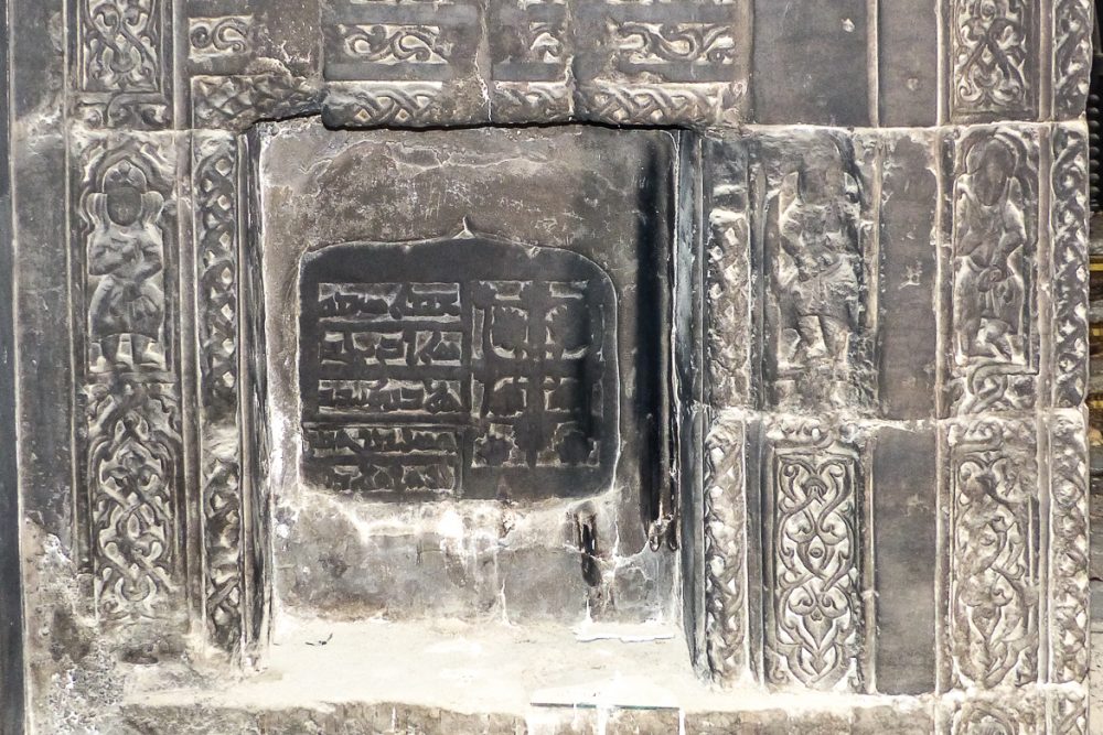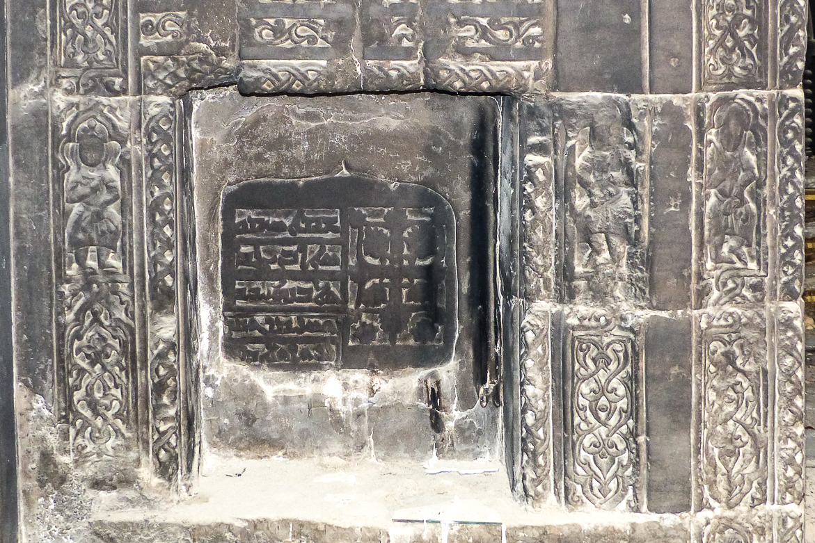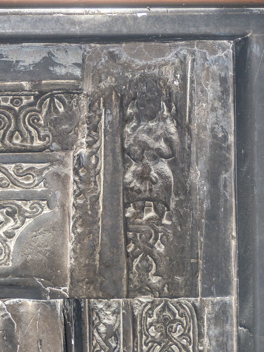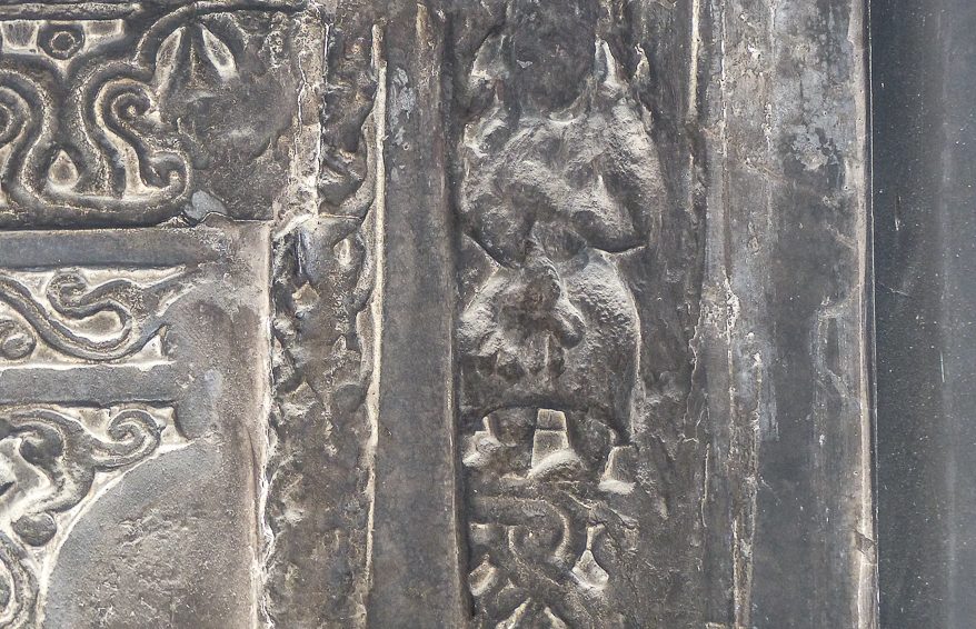 Un bas-relief représente également un homme en tailleur, les yeux fermés tenant de part et d’autre deux lions en laisse. Ce « Daniel aux lions » est une représentation typique de la sagesse que l’homme peut atteindre.