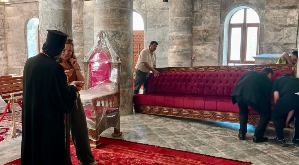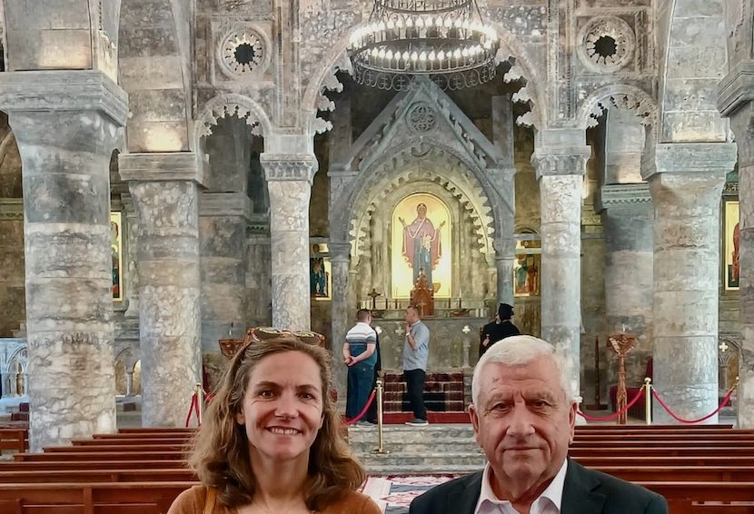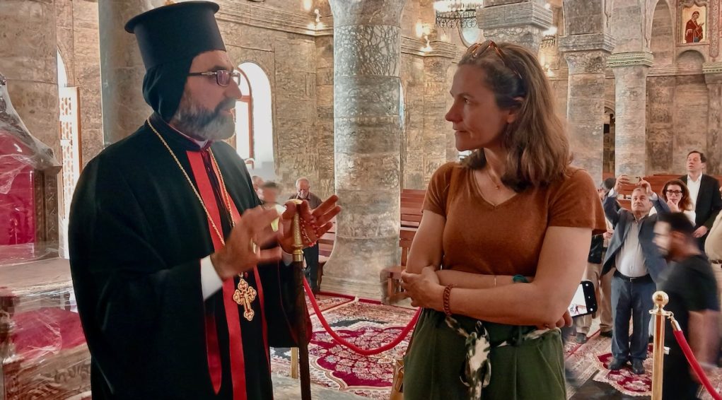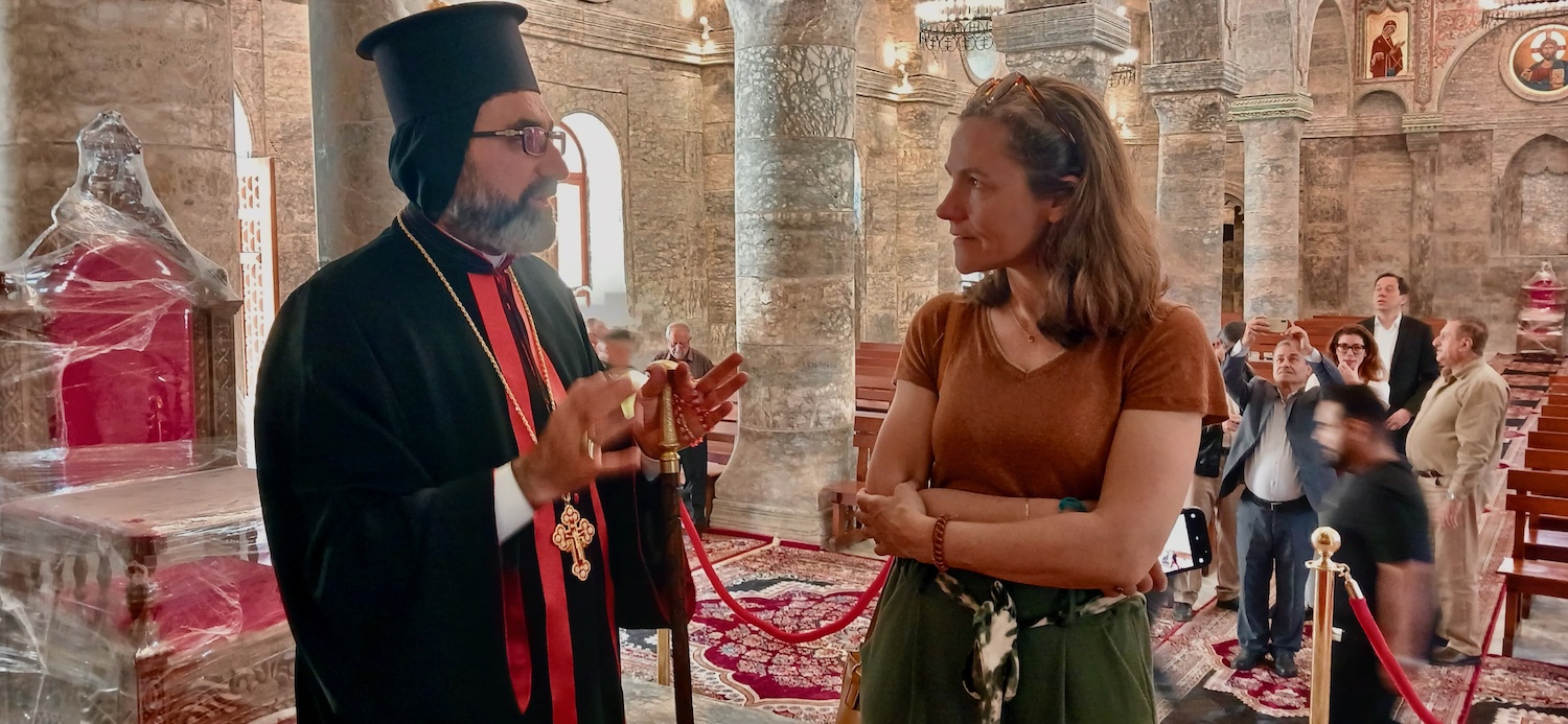 Reconstruction achevée de la cathédrale Al Tahira. Mgr Younan Hanu, archevêque syriaque-catholique de Mossoul avec Marie-Ange Denoyel, présidente de Mesopotamia