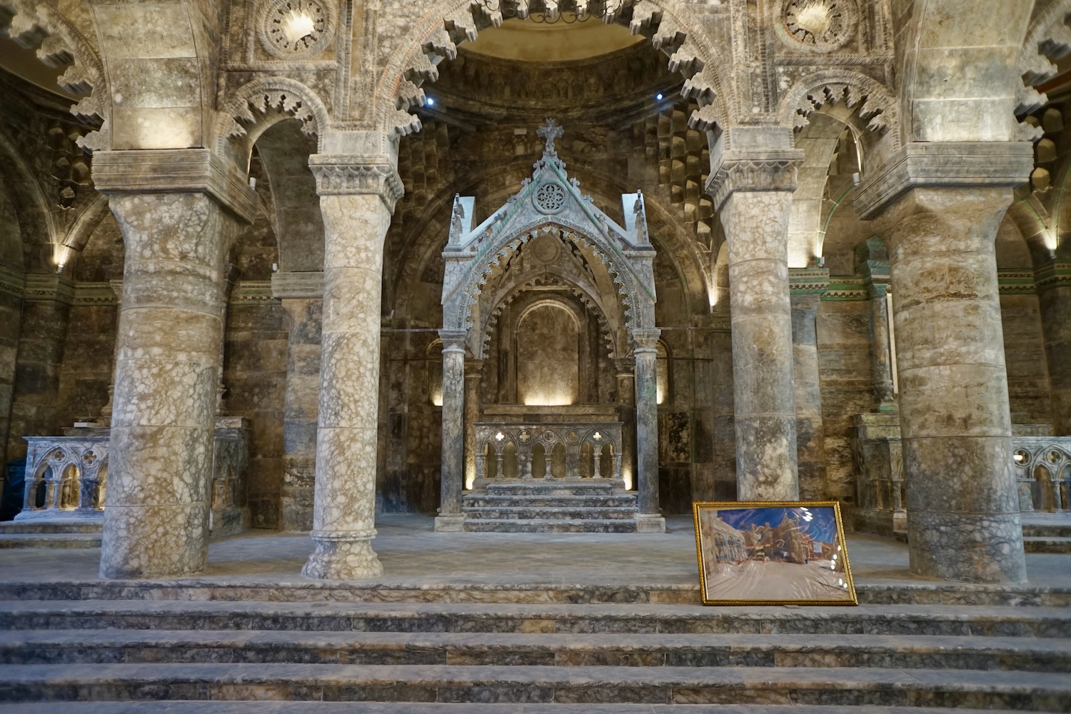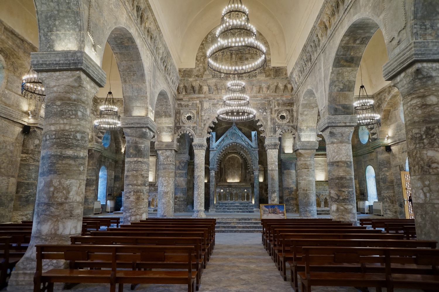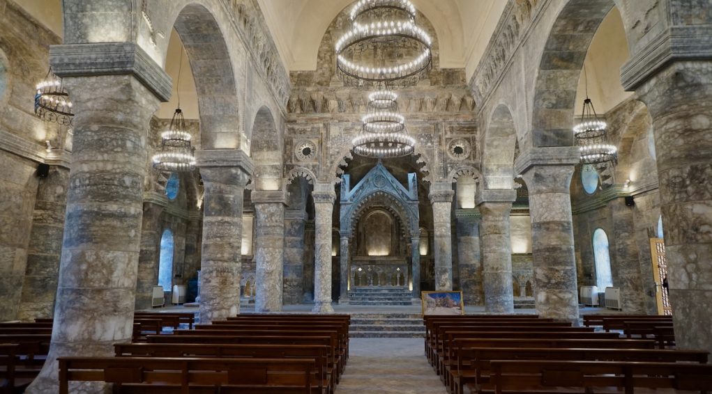 Galerie intérieure de la nouvelle cathédrale Al Tahira, après reconstruction