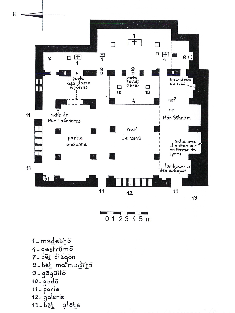 Plan de l’Eglise syriaque-orthodoxe Mar Touma de Mossoul © In « Les chrétiens de Mossoul et leurs églises pendant la période ottomane de 1516 à 1815 », Fr. Jean-Marie Mérigoux, o.p. Mossoul-Ninive, 1983, p.111 A.