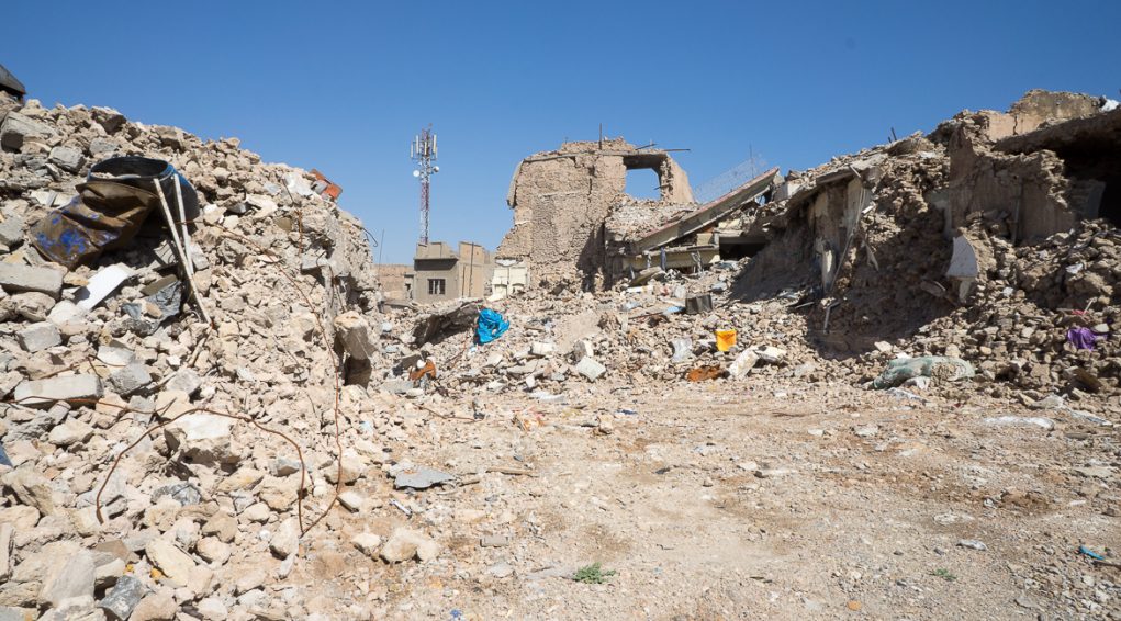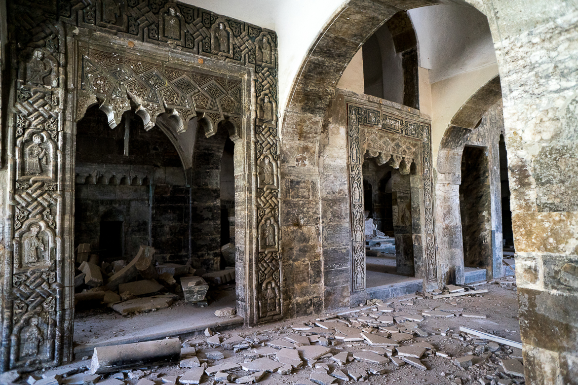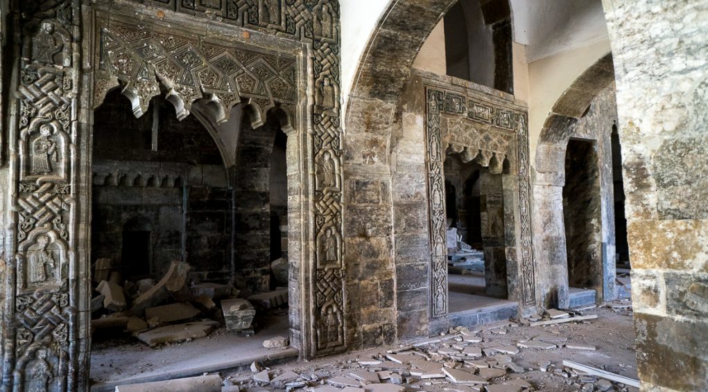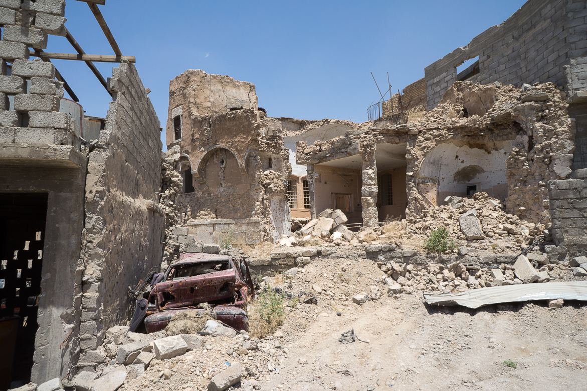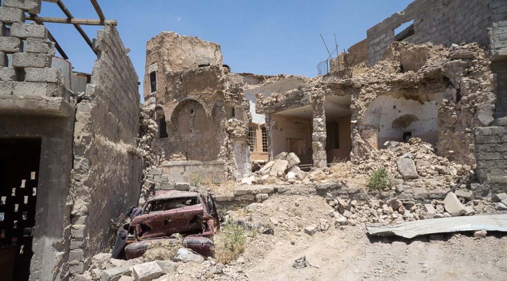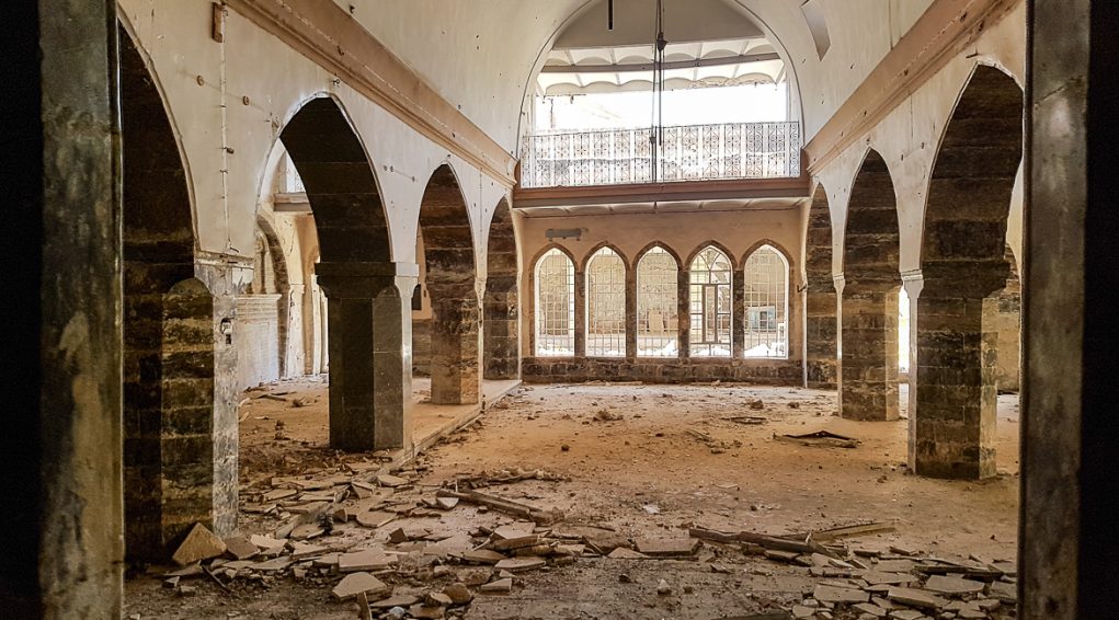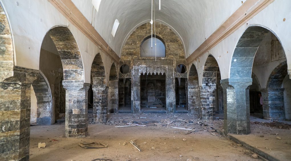 Entre juin 2014 et juillet 2017, Mossoul tomba aux mains des combattants islamistes de daesh. Les quelques 10 000 chrétiens qui résidaient encore dans la cité, virent leurs maisons frappées du signe Nazrani (Nazaréen, c’est à dire disciples de Jésus). Ainsi stigmatisés, ils furent sommés de se convertir à l’islam, de payer la djizia (l’impôt des dhimmis), ou de mourir. Ils fuirent la métropole massivement et en toute hâte, mais durent abandonner leur patrimoine chrétien qui fut en grande partie pillé, vandalisé et profané. La bataille de Mossoul et les bombardements de la coalition internationale qui écrasèrent les combattants de daesh sous un déluge de feu, réduisirent en poussière certains des plus grands édifices chrétiens (et musulmans) de Mossoul.