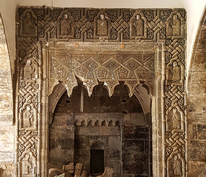 Aux XIIe et XIIIe siècles, en pleine période turque-seldjoukide, les dynastes Atabegs s’imposèrent dans toute la Mésopotamie irakienne et firent de Mossoul un haut lieu de pouvoir. A cette époque les Syriaques-Orthodoxes persécutés à Tikrit s’implantèrent dans la plaine de Ninive ainsi qu’à Mossoul, où ils développèrent leur communauté et fondèrent l’église Mar Ahûdêmmêh (Hûdéni). « A la fin du XXe siècle, à cause de l’inondation des sous-sol du quartier, l’église Mar Hûdéni, située bien en dessous du niveau du sol fut inondée et dut être abandonnée. Une nouvelle fut construite juste au dessus de l’ancienne. On a fort heureusement transporté et mis en évidence dans la nouvelle église la Porte Royale de style atabeg que le père Fiey qualifie de ‘joyau de la sculpture chrétienne du XIIIe siècle’. »[6]