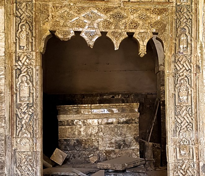 On pénètre dans l’église syriaque-orthodoxe Mar Touma par les portes ouvertes sur les façades nord et ouest.