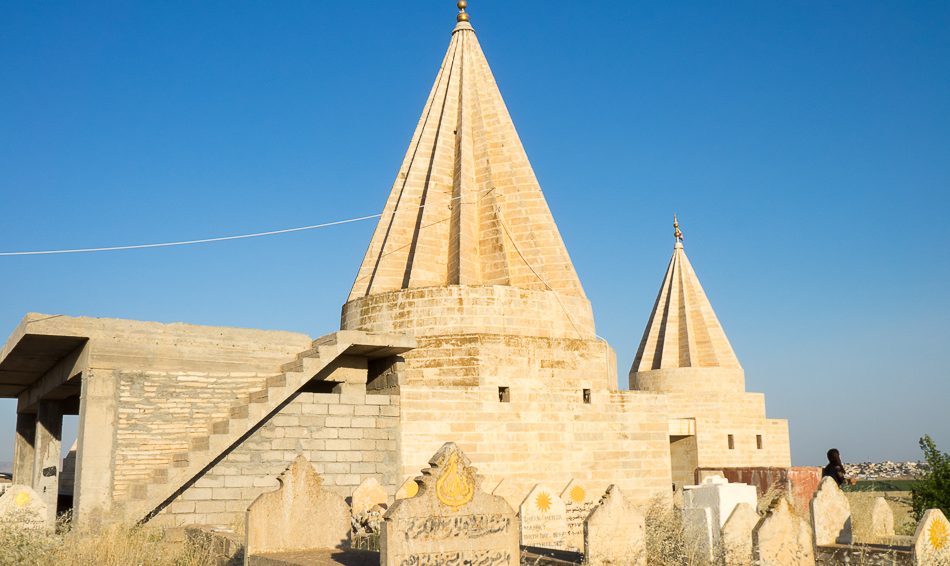 Il existe cependant un lieu fondamental vers lequel se tournent tous les Yézidis, y compris ceux de la diaspora, c’est la vallée de Lalesh au Kurdistan irakien. C’est l’endroit le plus sacré du yézidisme. C’est là que se trouve le sanctuaire de Cheikh ‘Adî, le grand réformateur du yézidisme au XIIesiècle. Cette vallée, ses mausolées et son environnement sont le centre de gravité de la vie mystique yézidie.