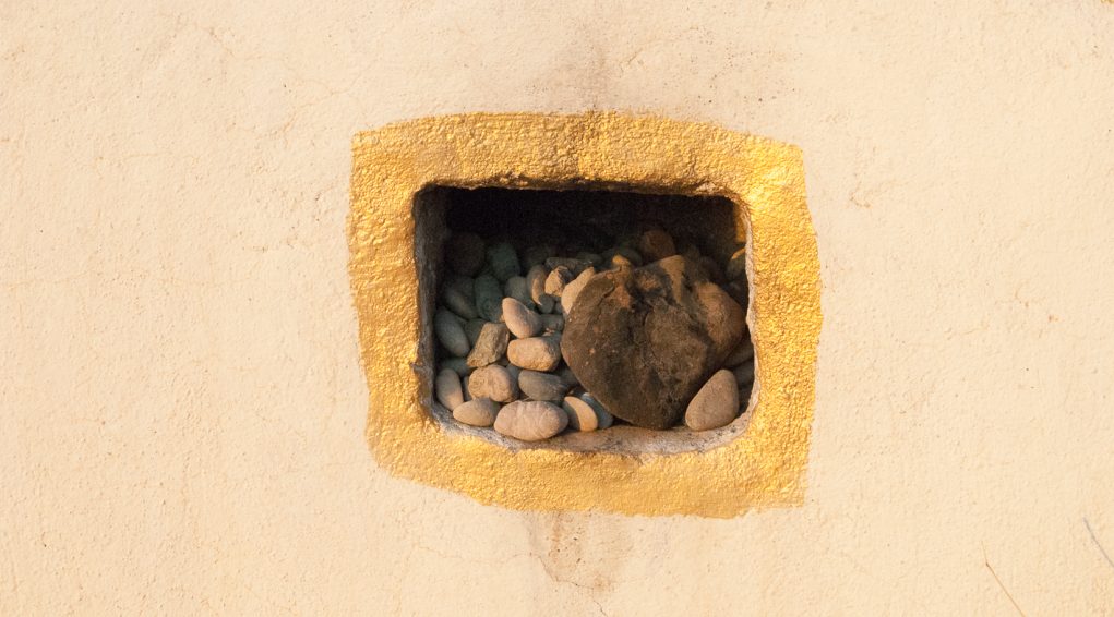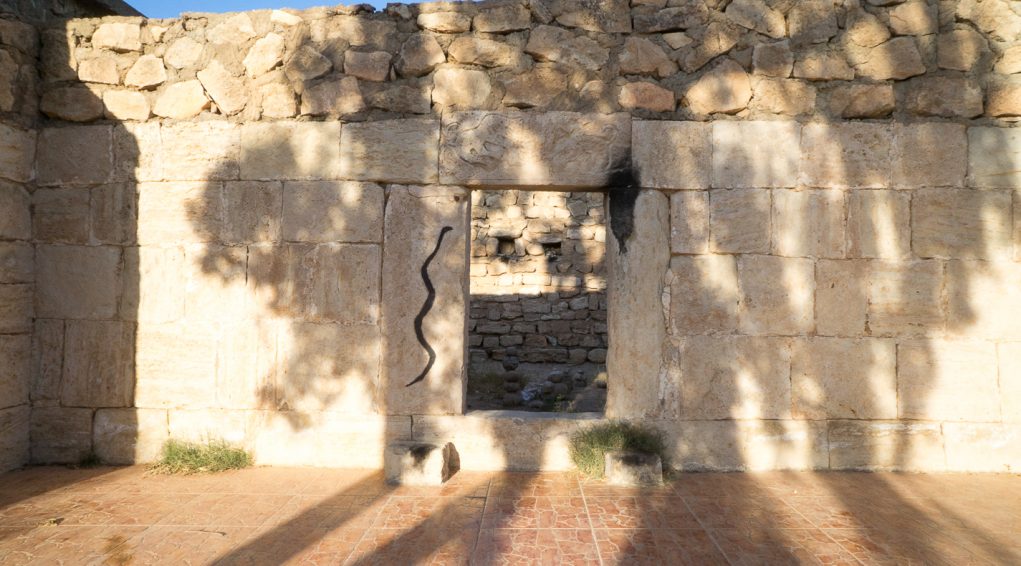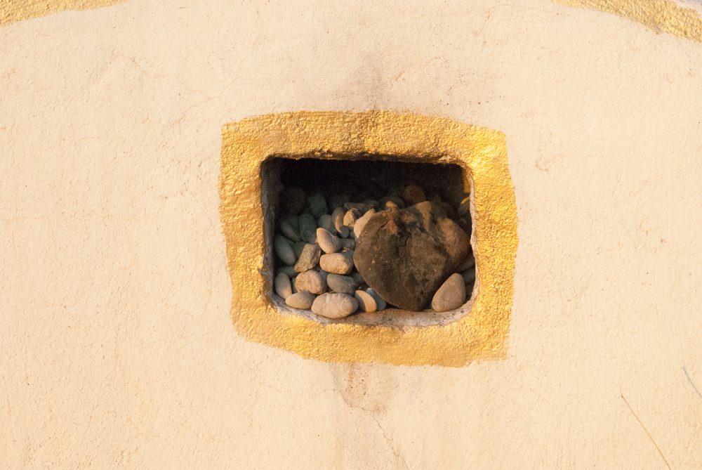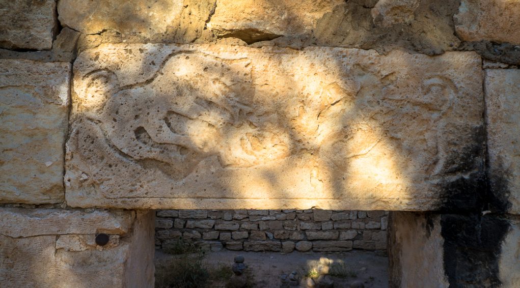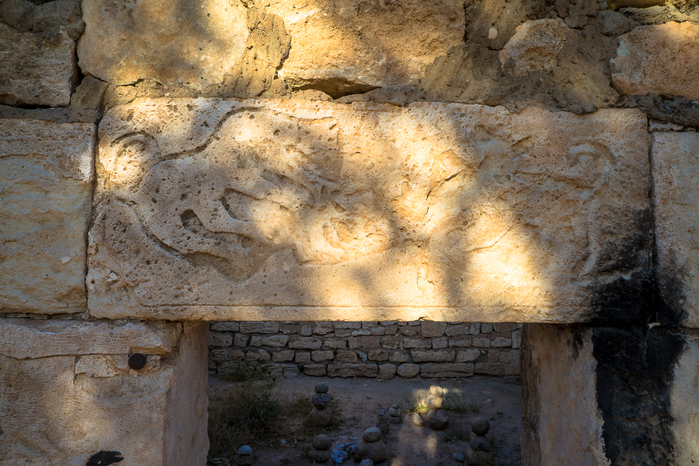 Mam Chevan qui donne son nom à cet espace sacré est connu dans la tradition yézidi comme un berger. Il est ici représenté en bas-reliefs par son bâton et ses moutons.