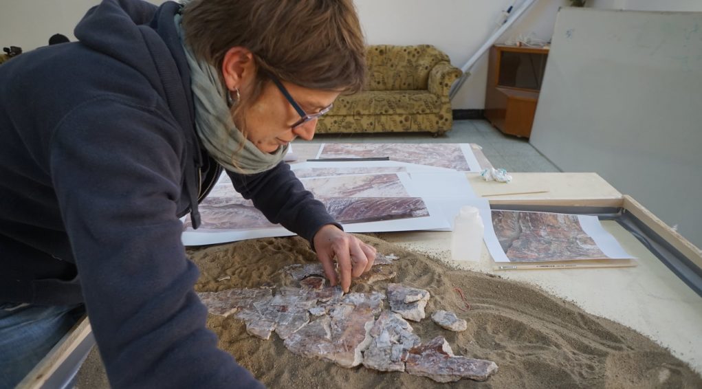 L’assemblage et l’ajustage des fragments à l’enduit sont maintenant terminés.