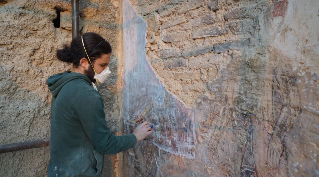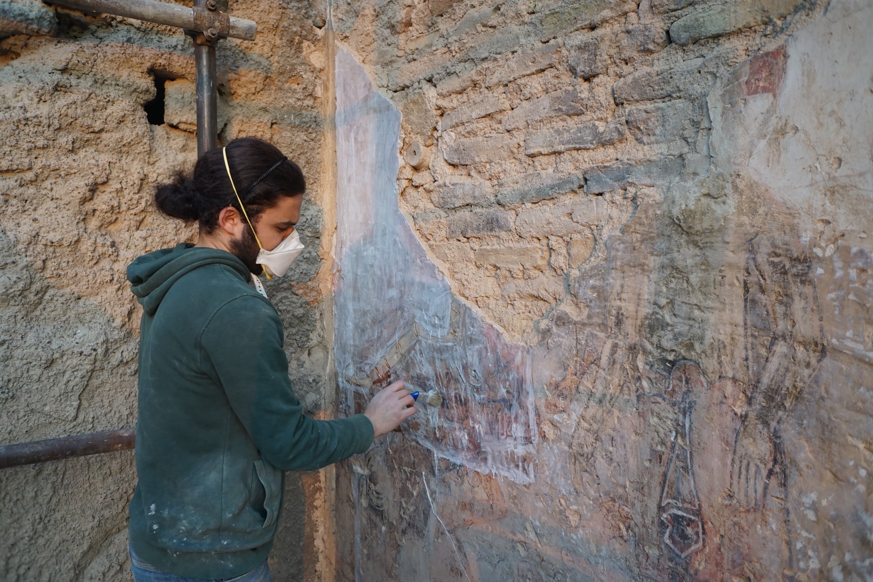 À la veille de l’inauguration de la peinture murale restaurée, le travail de retouches et de restitution a bien avancé.