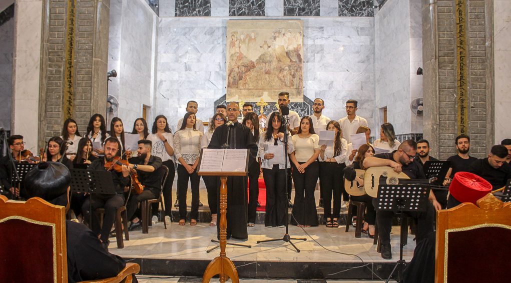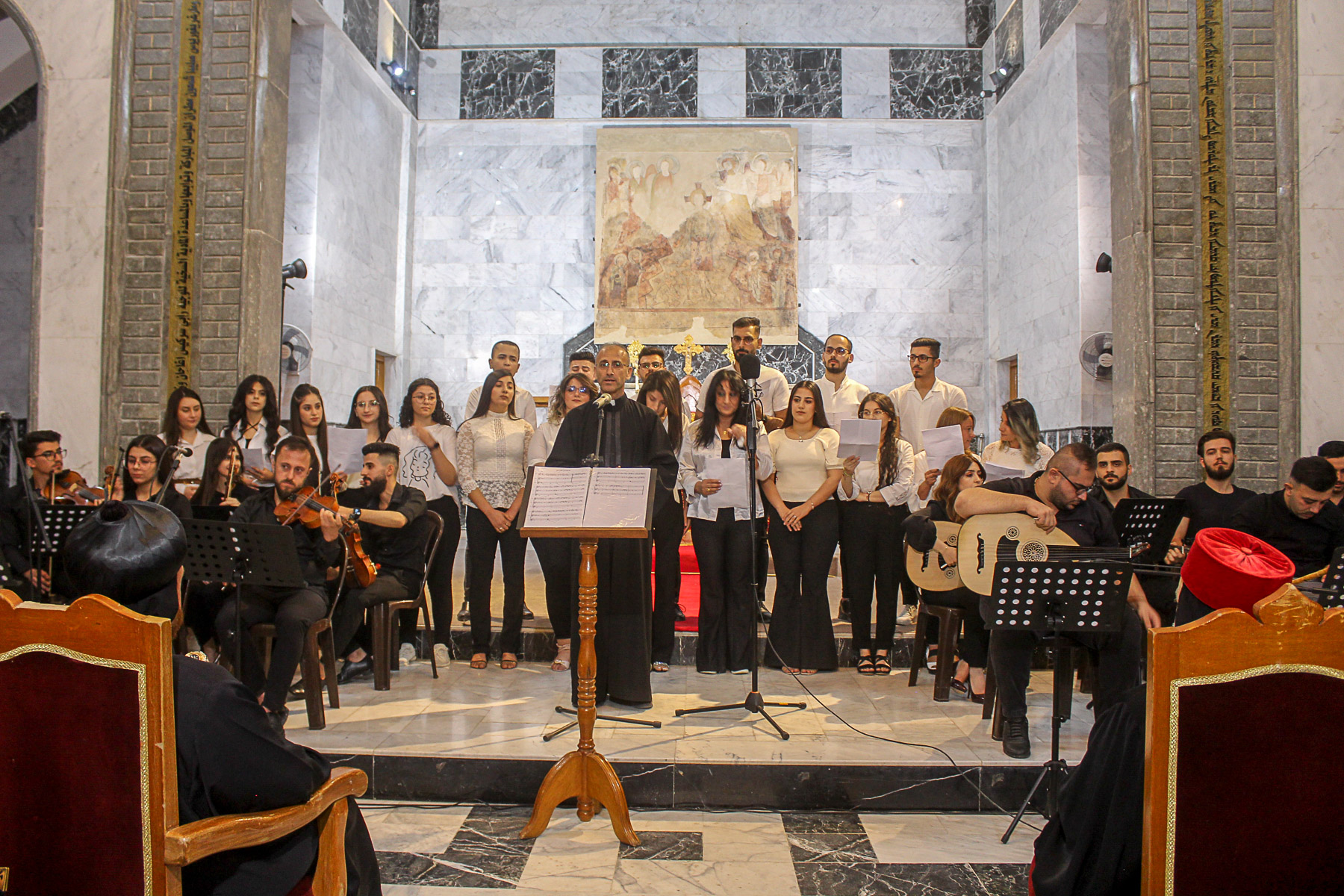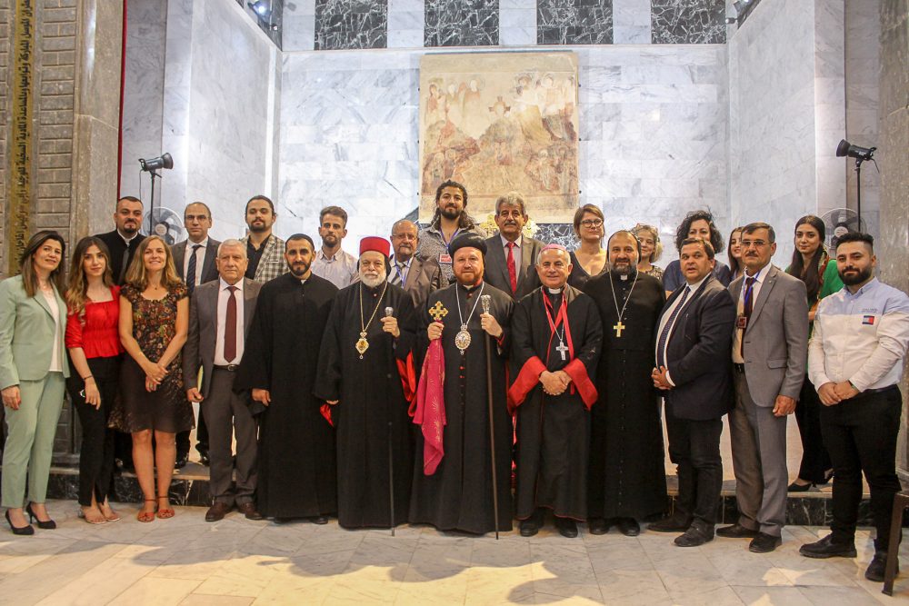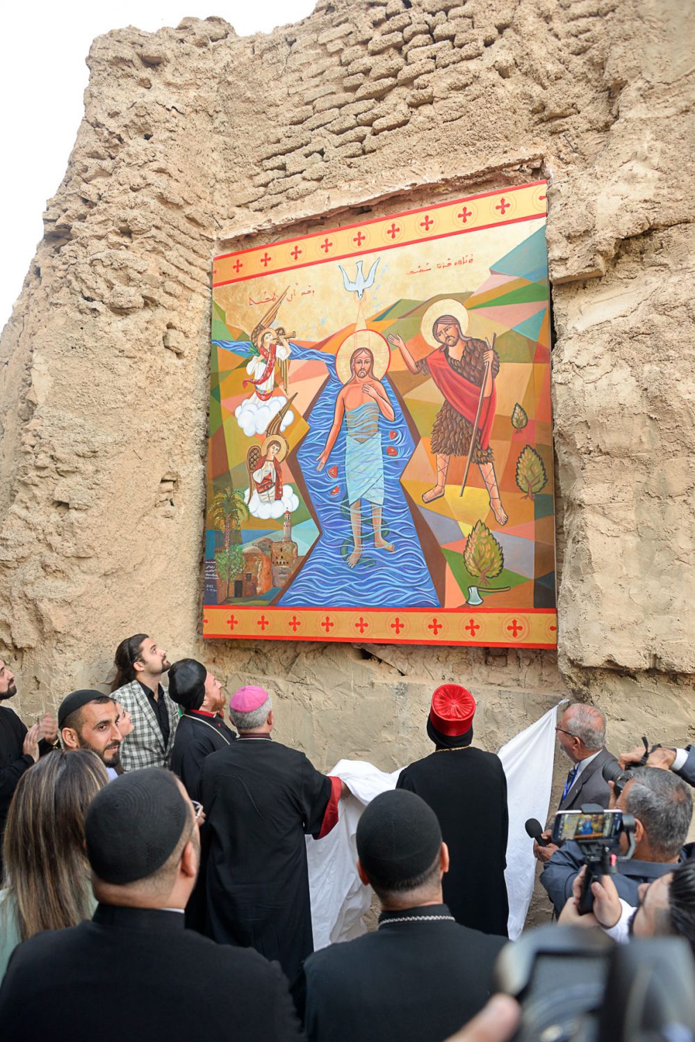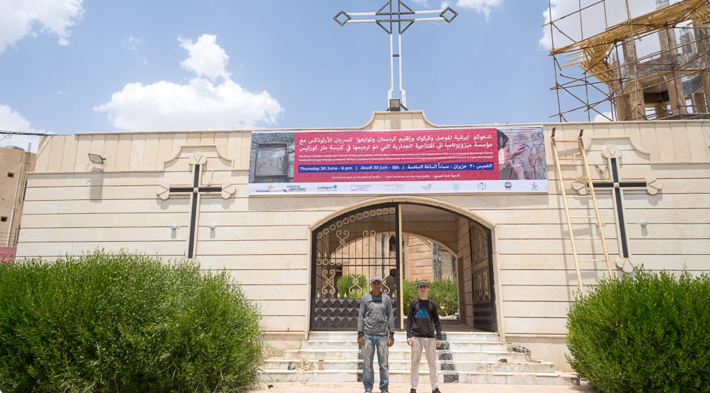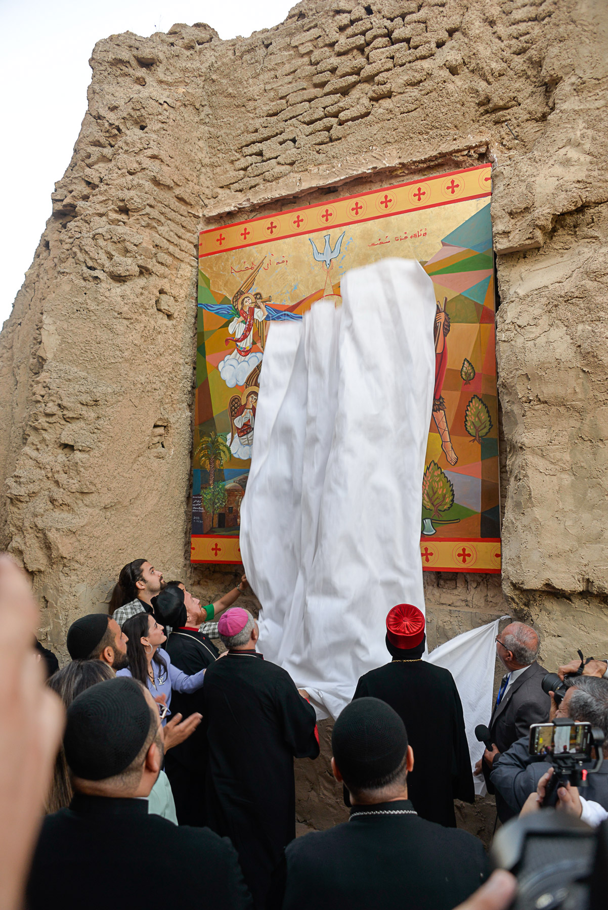 Cette nouvelle œuvre, accueillie avec un grand enthousiasme, a été installée sur le mur du sanctuaire de l’ancienne église Mar Guorguis, là-même où se trouvait auparavant la peinture murale sauvée et restaurée par Mesopotamia. Elle a également été inaugurée et bénie, ce jeudi 30 juin 2022, par Monseigneur Nicodemus Daoud Sharaf, archevêque syriaque-orthodoxe de Mossoul.