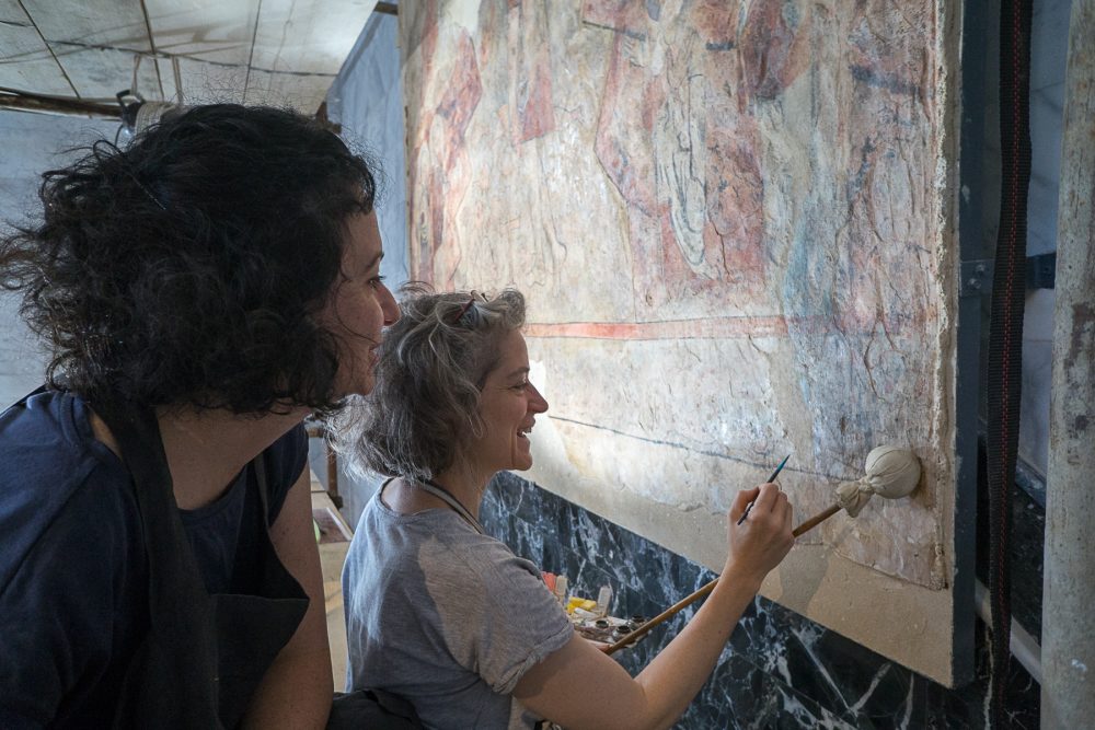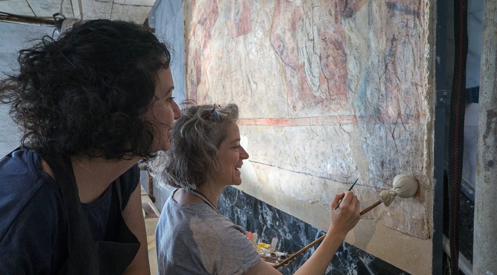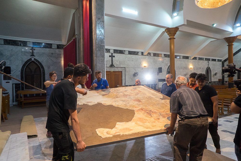 C’est avec l’aide de trois restauratrices françaises et des Irakiens investis sur place, que l’association Mesopotamia s’est lancée dans un programme de restauration et de réhabilitation de cette peinture.