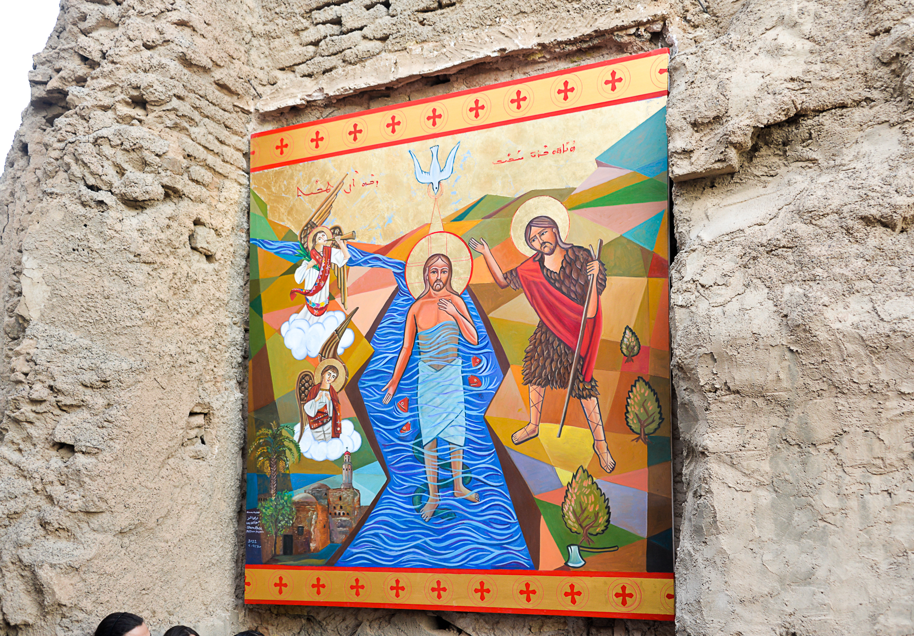 Parallèlement à la restauration de la peinture murale, une nouvelle peinture a été réalisée, sur un toile en coton, par 4 jeunes diplômés de l’école des Beaux-arts de l’université de Mossoul, Slvana Adnan, Valentina Fouad, Meryam Najeeb, Nenous Thabet, sous la direction de Ibrahim Lallo, peintre iconographe. Il s’agit d’une interprétation libre du baptême du Christ dans la Jourdain, d’une taille de 226 / 256 cm. Inspirée de la peinture murale originelle du XIIIe siècle, cette peinture à l’huile contient aussi des éléments caractéristiques de la ville de Bakhdida (Qaraqosh).
