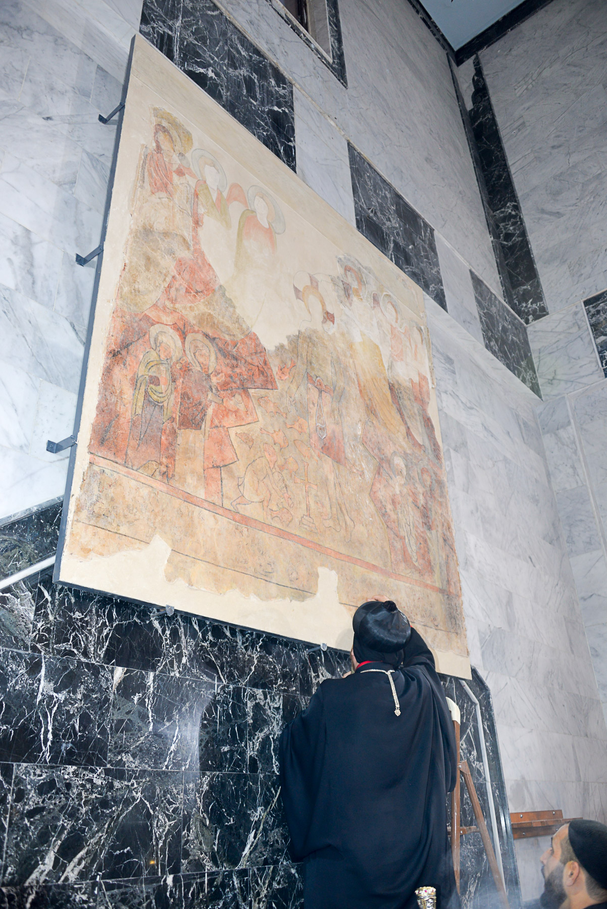 À l’occasion de ce 13ème jour de mission, nous avons eu l’honneur de recevoir le cardinal et Patriarche chaldéen Louis Raphaël 1er Sako, ainsi que l’archevêque des Chaldéens de Mossoul, Monseigneur Najeeb Mikhaeel, pour admirer la peinture installée dans son nouvel emplacement.