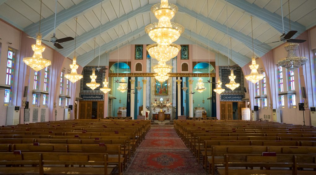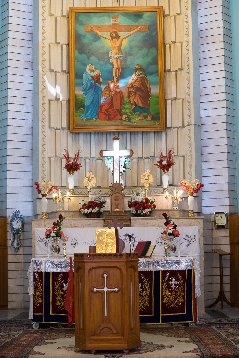 كاتدرائية مار بطرس ومار بولس في بغداد. داخل الكاتدرائية. آذار 2018 © باسكال ماغيسيان / ميزوبوتاميا
