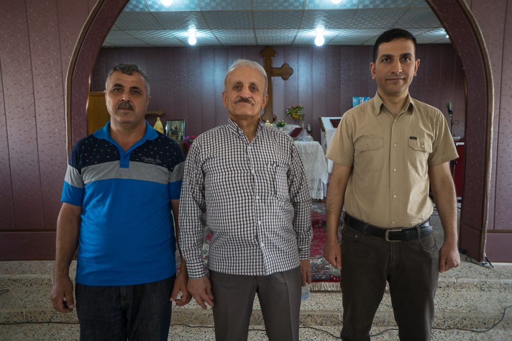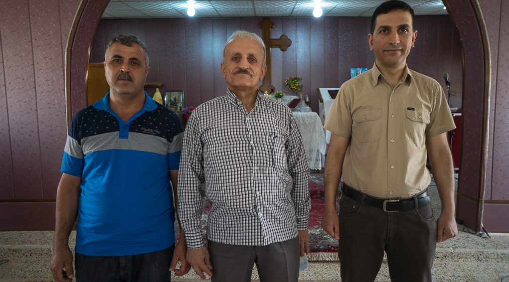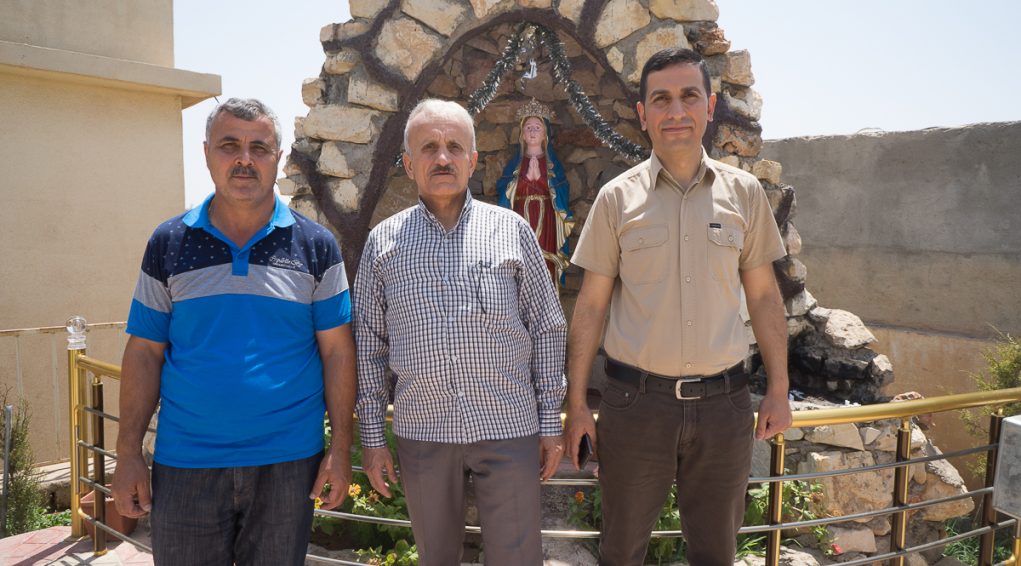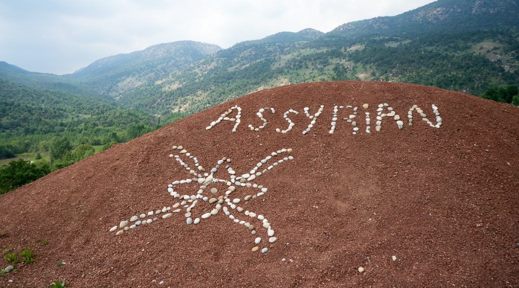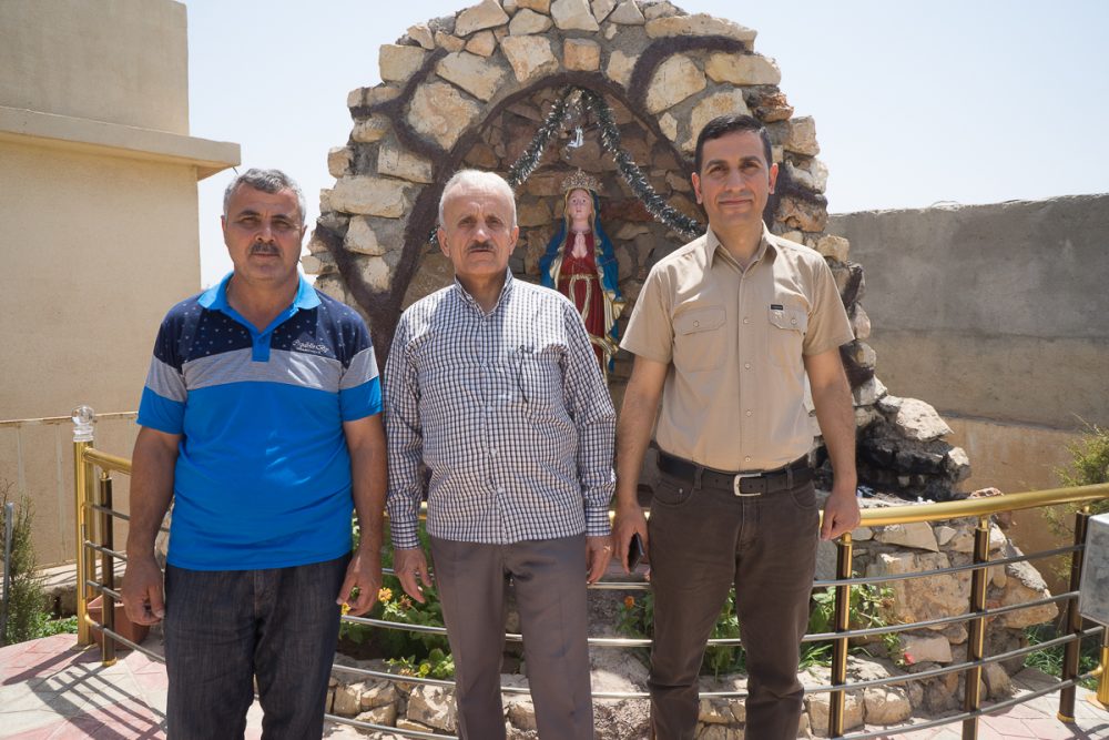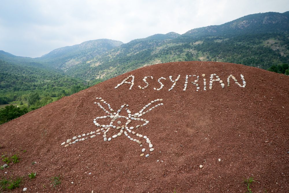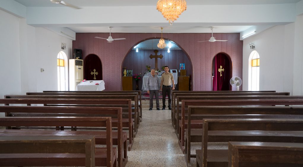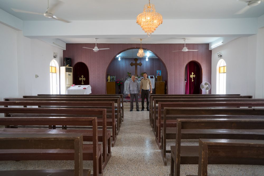 أمام بوابة مدخل كنيسة القديسين سيرج وباخوس الآشورية في عقرة. تموز 2017 © باسكال ماغيسيان / ميزوبوتاميا